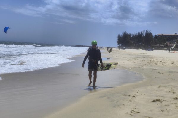 Endlich hört André mich wieder, aber begreifen tut er mich immer noch nicht 🤪🙈🤣. Heute war perfektes Kitesurf Wetter. Die Sonne scheint und es bläst ein starker Wind (etwa 20 – 25 km/h). Voller Tatendrang gehen wir zum Strand. Wir werden eingekleidet, T-Shirt, Harnas und Helm. Dann geht es für mich direkt ins Wasser, André übt noch auf dem Strand. Ganz so einfach wie es aussieht, ist es nicht. Am Ende des Tages haben wir es aber geschaft. Die erste Meter sind gefahren. Juppie. Wir kommen unser Ziel jeden Tag näher. Nach dem Kiten hat André gesagt, dass sein Ohr…