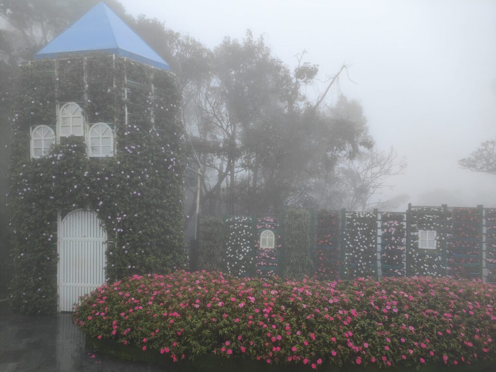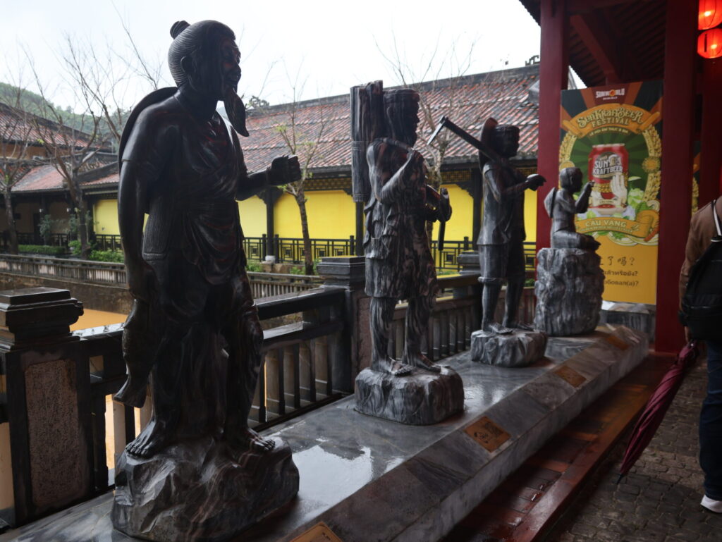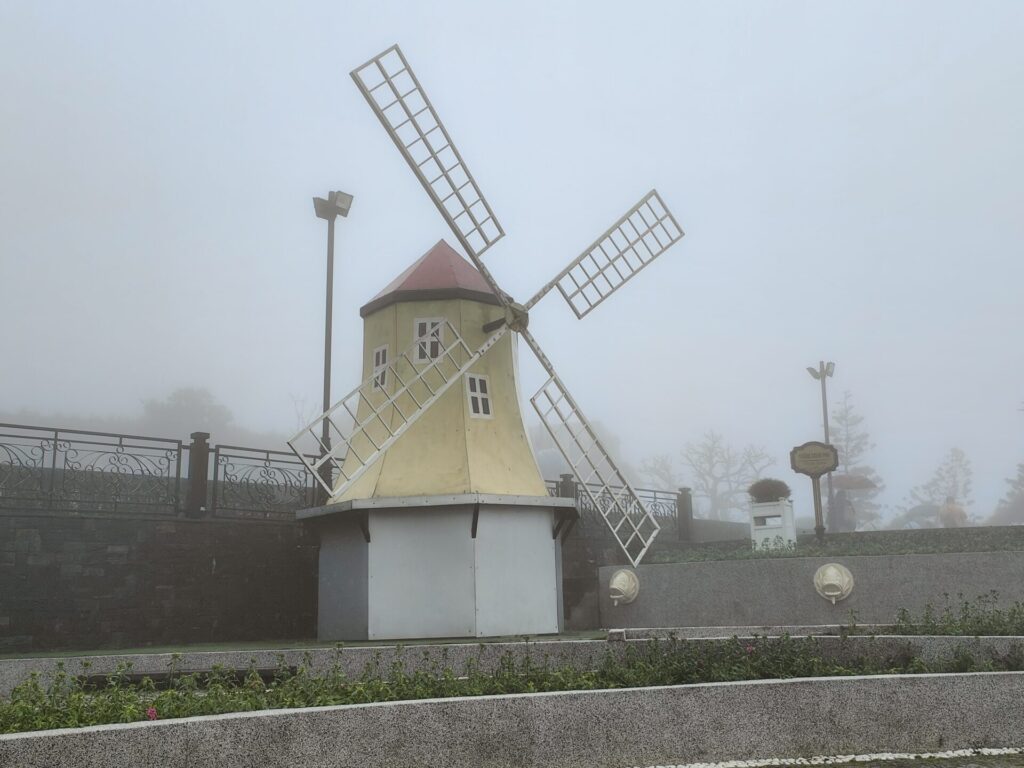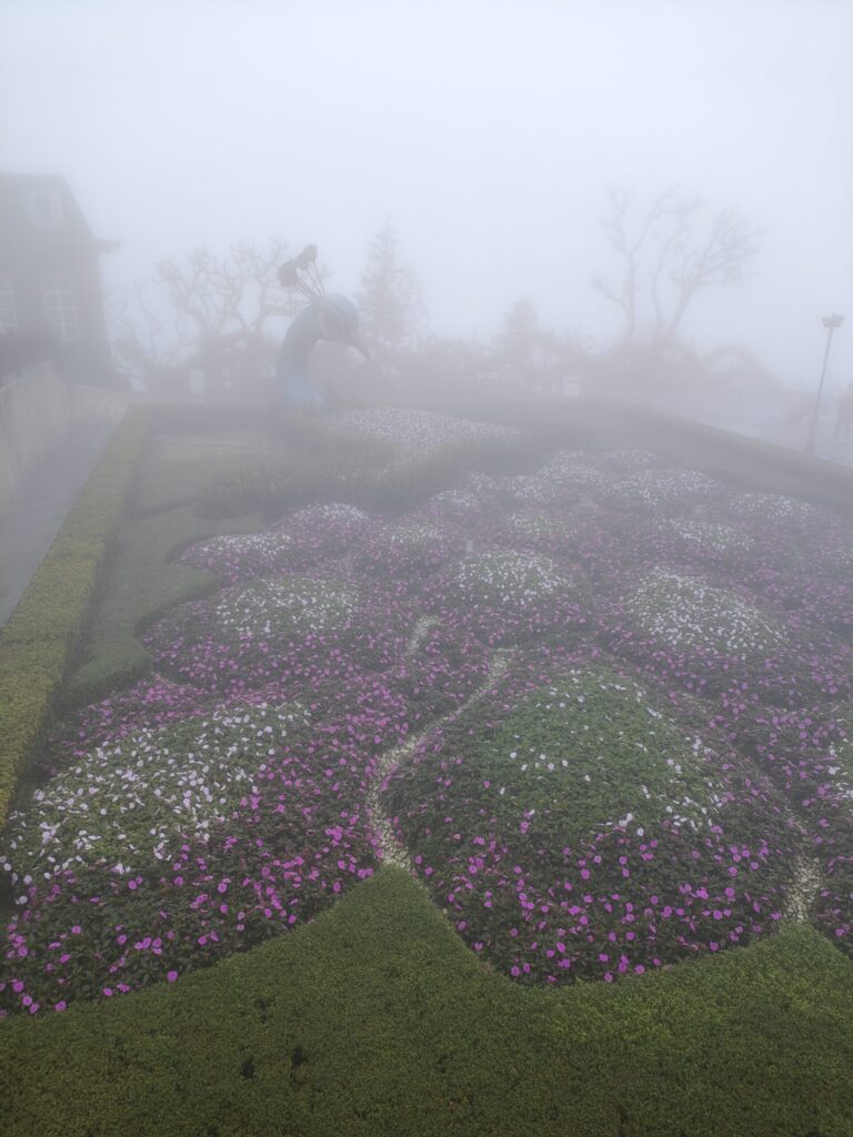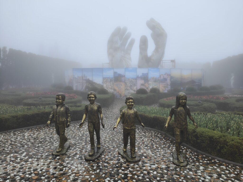 Nach eine knappe Stunde fahren sind wir in Ba Na angekommen. Es geht mit der Kabelbahn hoch. Wir fühlen uns wie zuhause. Wir sind mitten in den Wolken und sehen nichts. Auch oben an Ba Na Hills ist die Sicht sehr schlecht.