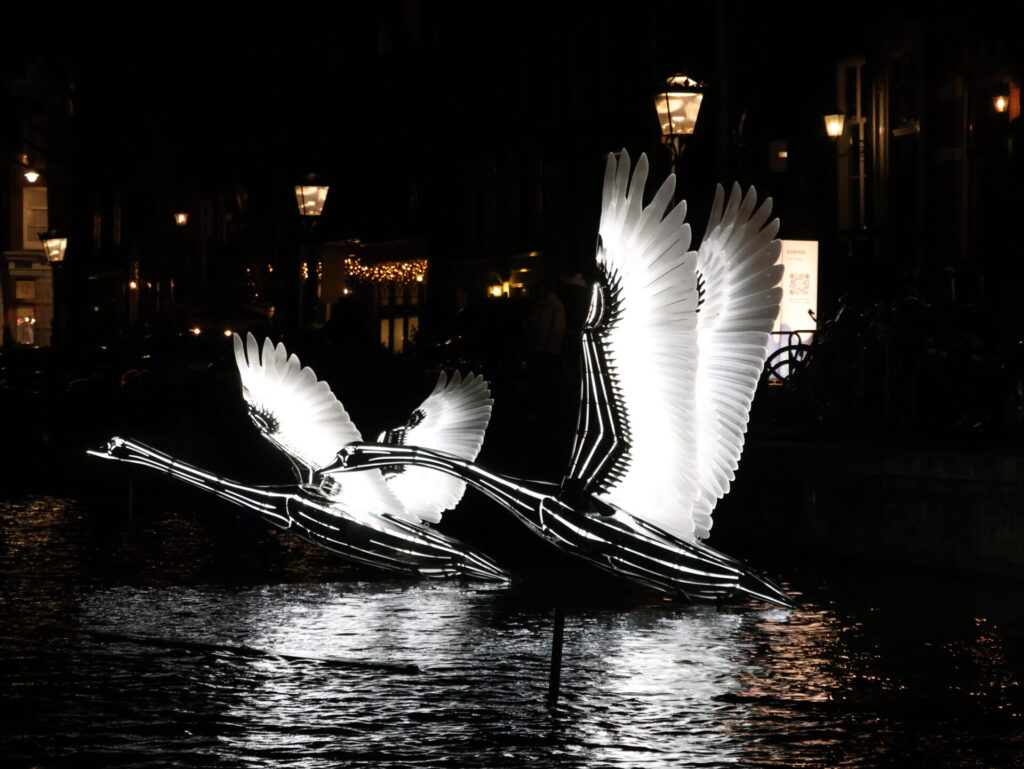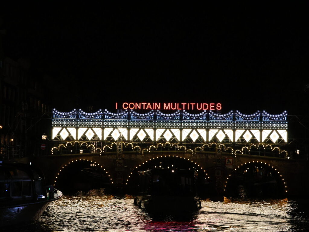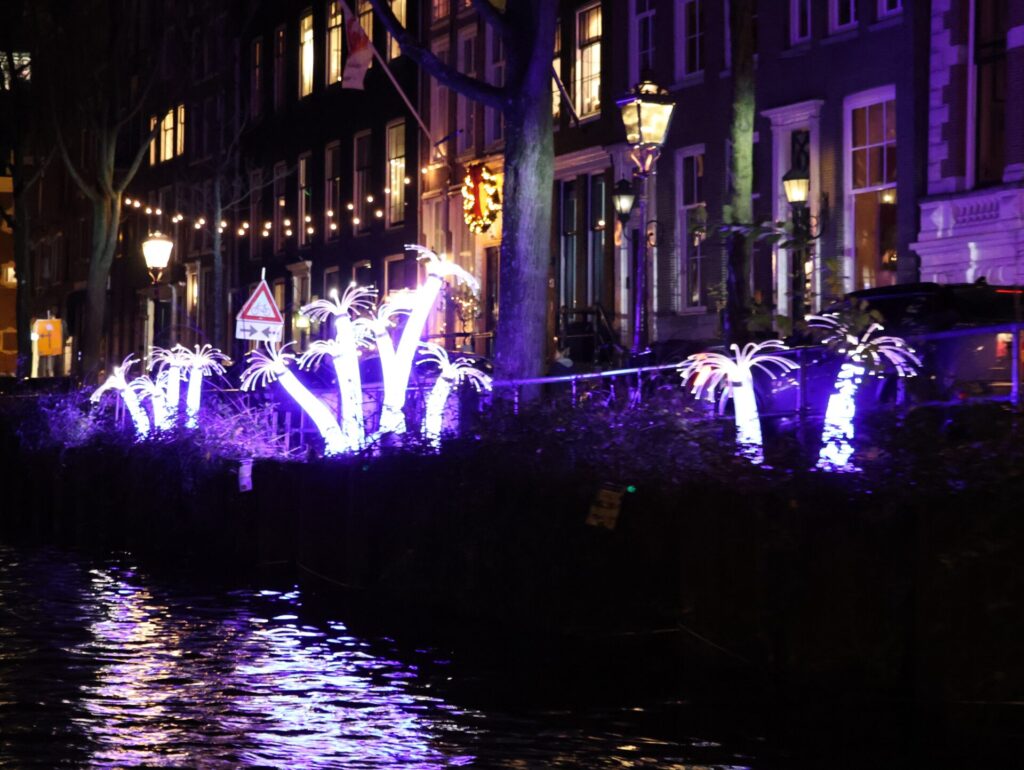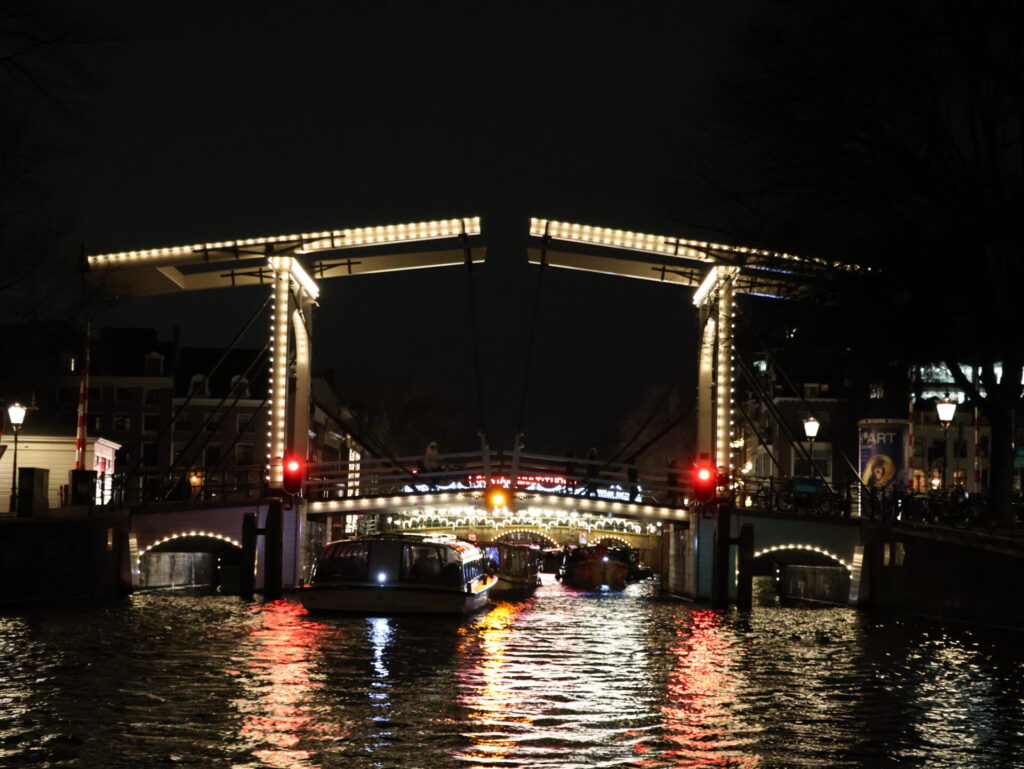 Abends haben wir eine Grachtenrundfahrt gebucht. Das Amsterdam Light Festival findet statt. Die Rundfahrt führt uns an schönen Lichtkunstwerke vorbei. Wir geniessen die Fahrt. Kalt ist es nicht und ganz wichtig, es ist trocken .