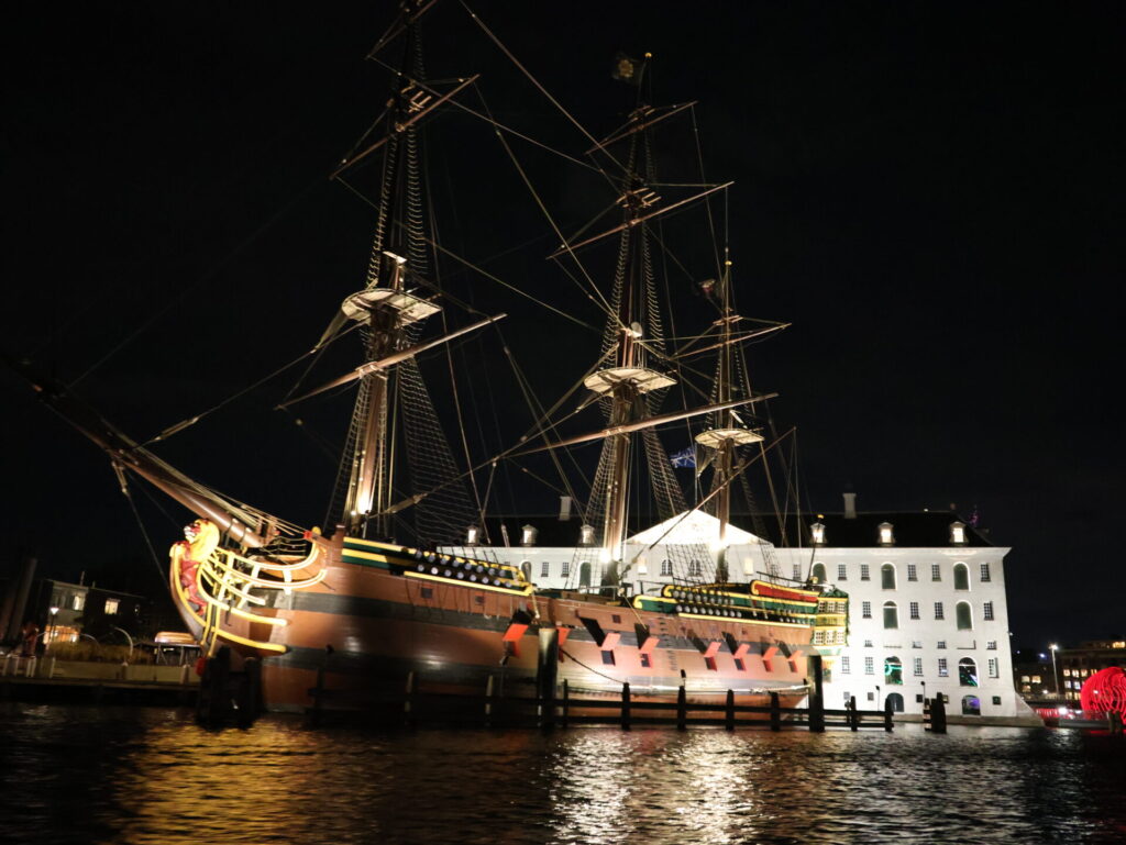 ’s Avonds hebben we een rondvaart door de grachten geboekt. Het Amsterdam Light Festival vindt plaats. De rondvaart voert ons langs prachtige lichtkunstwerken. We genieten van de tocht. Het is niet koud en heel belangrijk, het is droog .