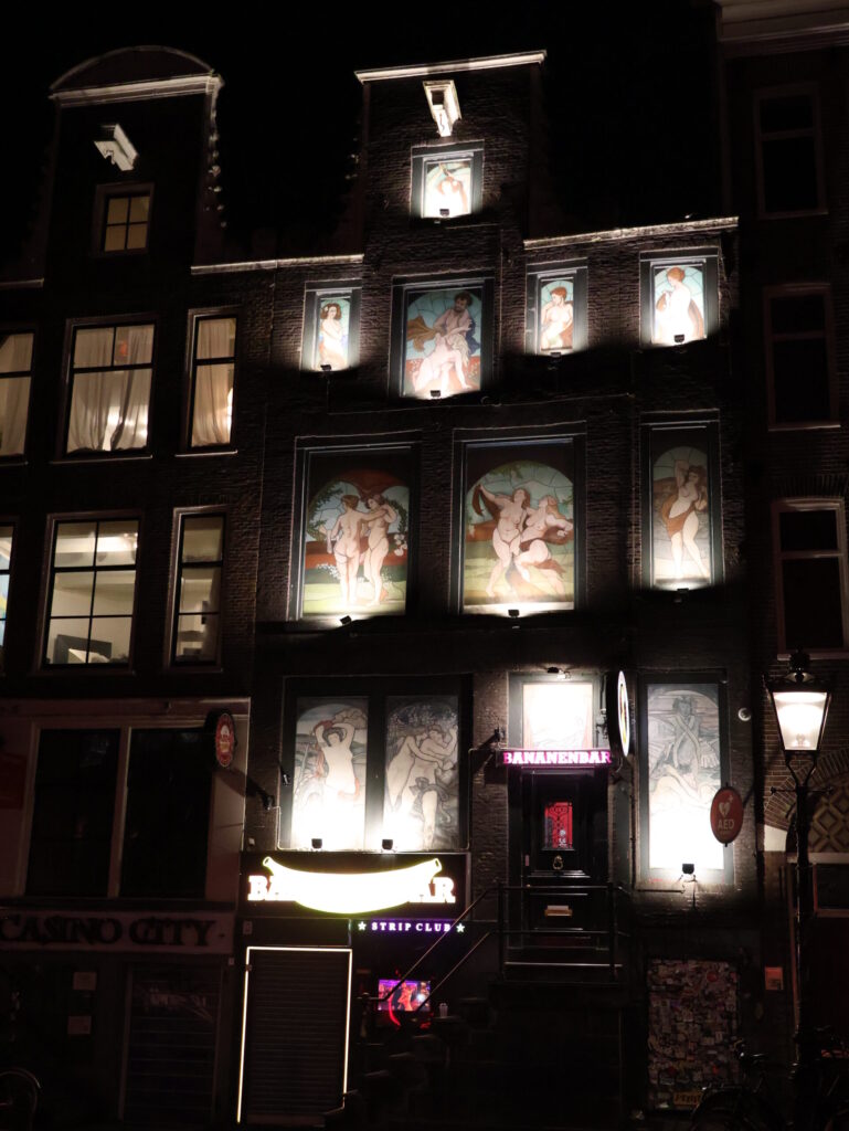 Wir laufen weiter über den Dam. An das Denkmal, eine Nadel, vorbei. Wir besuchen den Bijenkorf. Eines der ältesten Warenhäuser der Niederlanden. Dann geht es über das Rokin zum Rotlicht Viertel. Dies ist fast ein Must wenn man Amsterdam besucht.