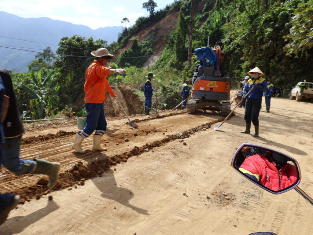 Dit was ook het gebied waar de moessonregens afgelopen oktober en november veel schade hebben aangericht. De sporen zijn nog steeds duidelijk zichtbaar. Het is echter verbazingwekkend hoe snel de Vietnamezen deze weg hebben vrijgemaakt en weer begaanbaar hebben gemaakt voor het verkeer. Er zijn echter talrijke bouwplaatsen waar de weggespoelde hellingen worden gestabiliseerd, wegen worden hersteld en een totaal vernielde brug wordt vervangen.