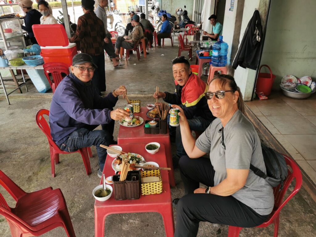 Na ongeveer 180 kilometer zijn we aangekomen in Prao in de regio Quảng Nam. We zijn hier de enige toeristen. Zo voelen we ons weer eens alsof we in de dierentuin zijn. Er wordt naar ons gelachen, gezwaaid en waarschijnlijk ook uitgelachen. Maar wat maakt het uit. Het is leuk.