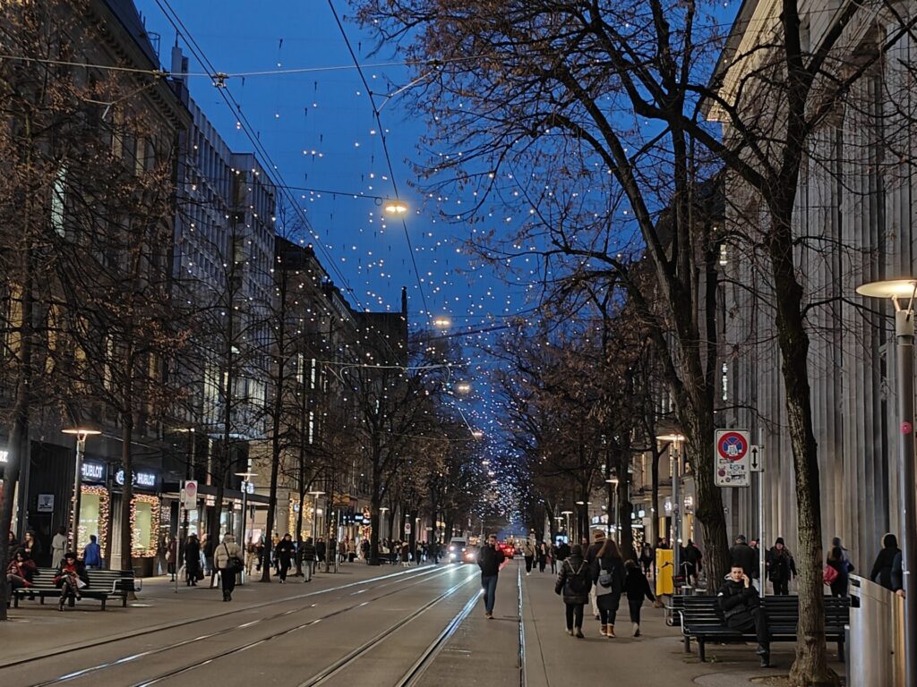 Vandaag zijn we naar Zürich gereisd. We willen de kerstverlichting en de zingende kerstboom bekijken. Zo komen ook wij in de kerstsfeer.