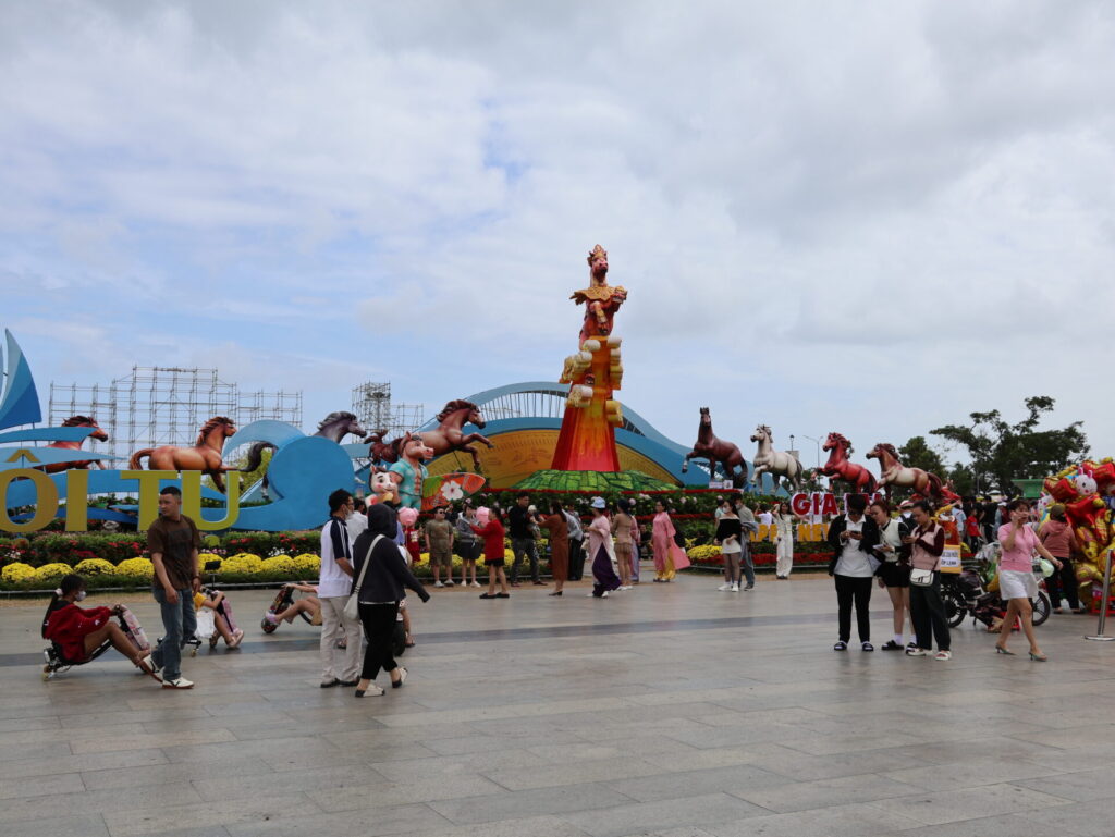 Onze eerste dag in Quy Nhon. We gaan te voet op pad. Eigenlijk willen we een scooter huren, omdat de bezienswaardigheden wat verder weg liggen. Maar omdat het nog steeds Tet-feestdagen zijn (vandaag zou de laatste dag moeten zijn), zijn de winkels nog steeds gesloten.