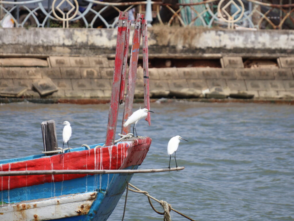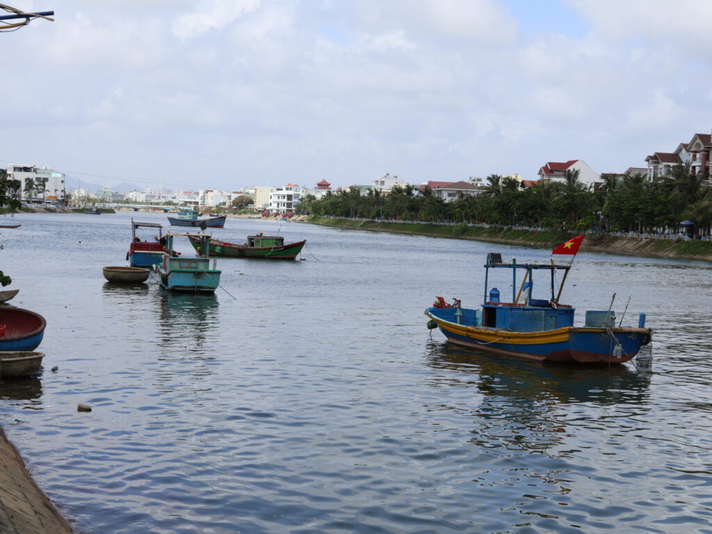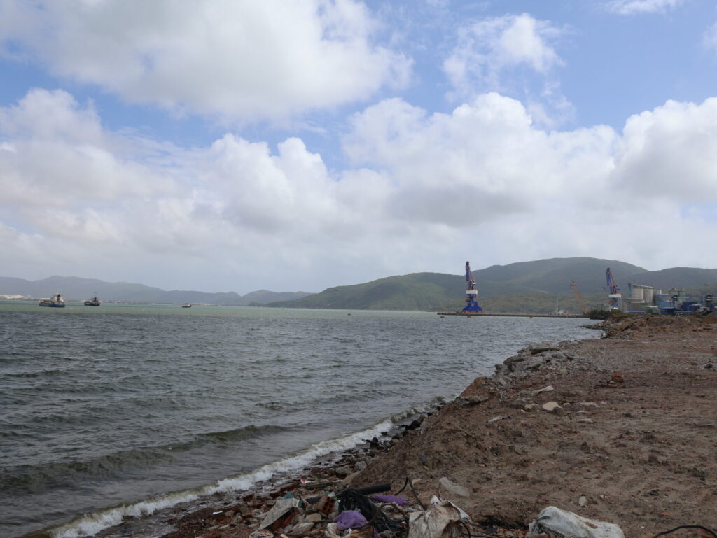 Losgelaufen sind wir zum Hafengelände. Quy Nhon hat einen grossen Hafen mit Kräne und eine riesige Fischerflotte. Aber auch dieses Gebiet ist ausgestorben. Nur ein grösseres Restaurant in der Marina Tocepo hat offen.
