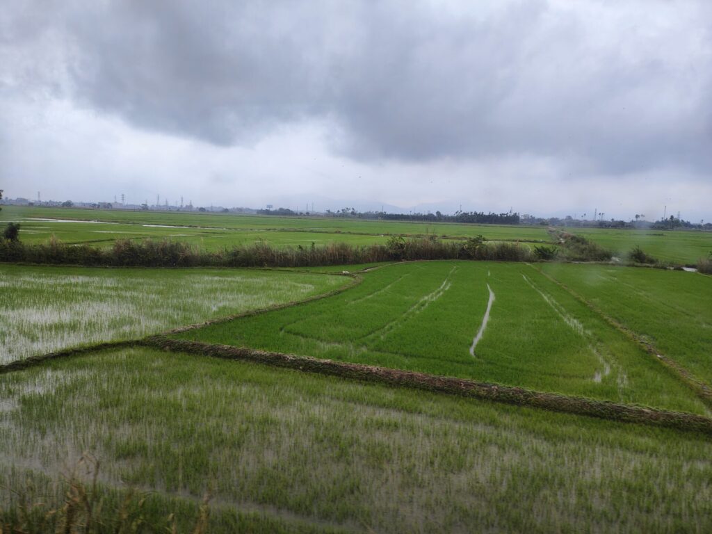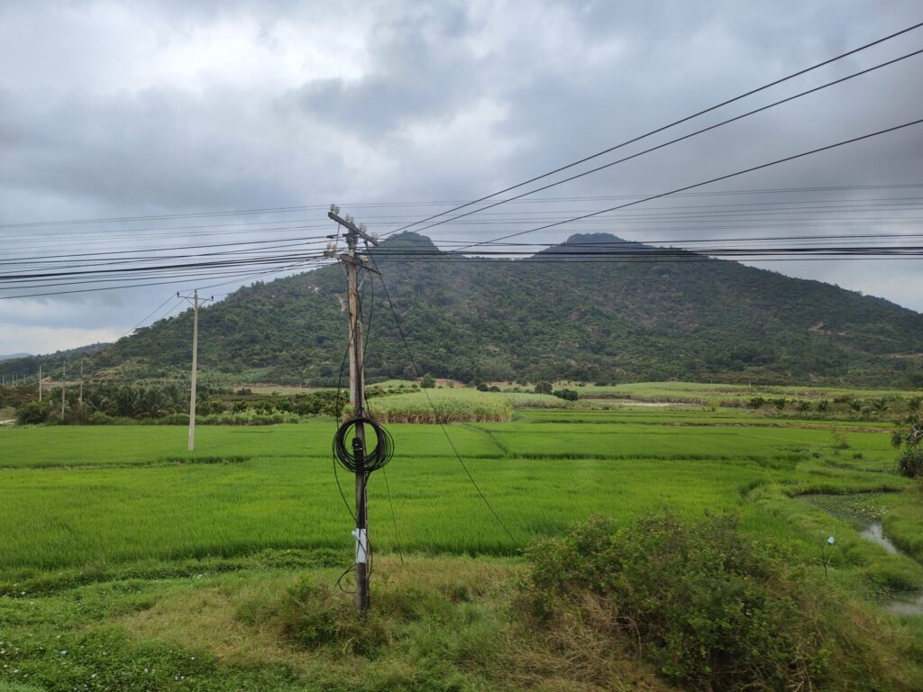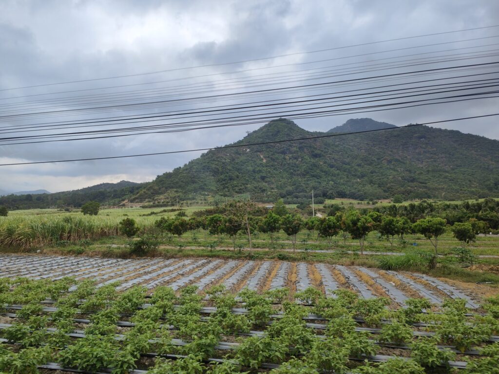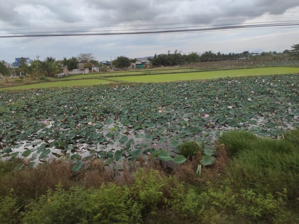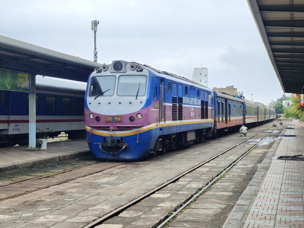 Vandaag was het weer een reisdag. We zijn met de trein van Nha Trang naar Binh Thuan gereisd en vervolgens met de taxi naar Mũi Né. Toen we op het station van Nha Trang stonden te wachten, regende het lichtjes. Ook onderweg waren er steeds weer regenbuien. In Mũi Né was het weer droog. Het was perfecte timing.