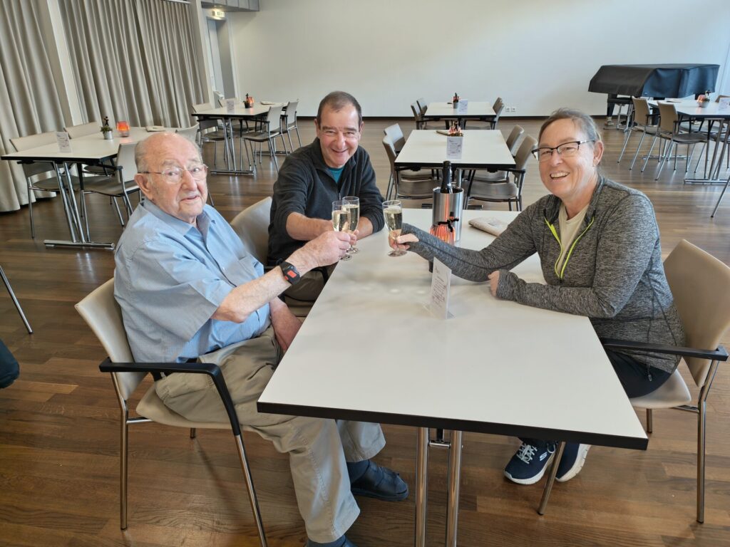 ’s Middags zijn we naar Winterthur gereden. We willen samen met Claude het nieuwe jaar inluiden. Omdat het middag is, proberen we hem te bellen, zodat hij tijd heeft om wakker te worden voordat we daar zijn.