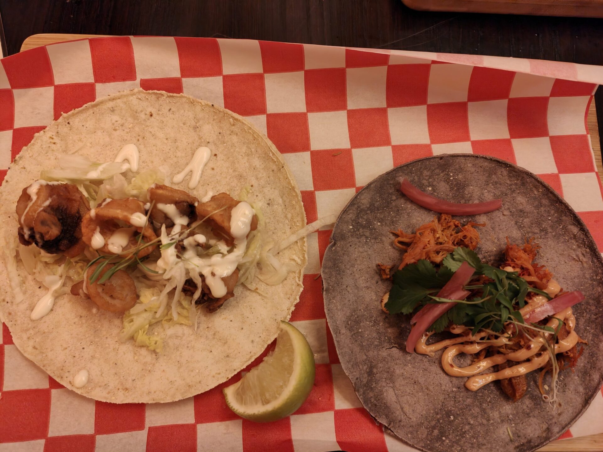 Heute war Taco-Tag. Es gab ein Menü mit sechs verschiedene Tacos und ein Dessert. Wir mussten dies natürlich ausprobieren. Die Tacos waren super. Es gab Vegi-Tacos mit Süsskartoffeln, Tacos mit Fisch und Fleisch. Ziemlich abwechslungsreich. Die Bedienung war sehr aufmerksam und fragte uns immer wieder wie es war. Da es das erste Mal war, ein Themenabend durchzuführen, war sie interessiert wie es ankam und ob es genügend war. Wir werden sicher nochmal gehen um die reguläre Karte auszuprobieren.