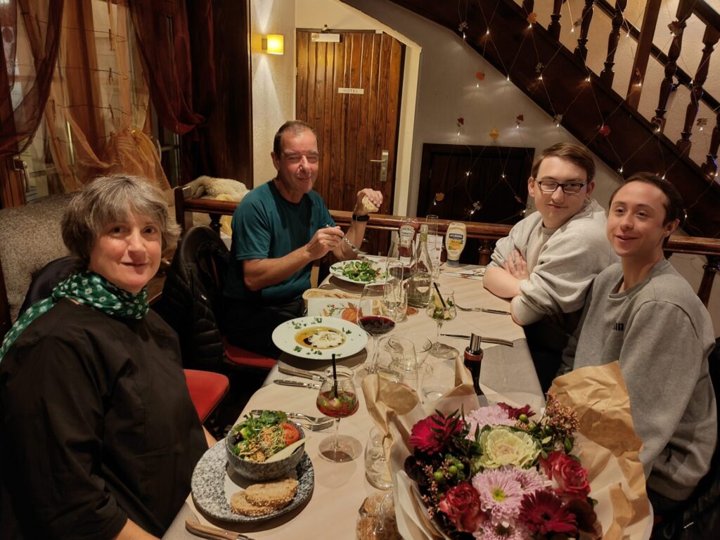 Die Feier in der Schule war nach einer gute Stunde zu Ende und gingen die drei auch zum Restaurant Falken. Der Skipper war bereits dort und wartete, Susi kam kurze Zeit später. Sie haben es sich gut gehen lassen. Schliesslich ist es ein wichtiger Meilenstein für Richard. Es gab verschiedenes auf dem heissen Stein und Wildschweinfilet. Der Abend war daher auch sehr schnell vorbei.