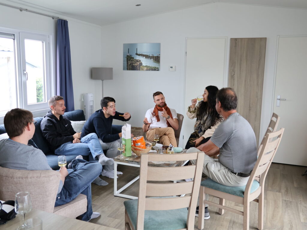 Toen was het tijd voor het aperitief. Aangezien Gesi en Phipps vandaag organiseerden, hadden ze alles voorbereid. We kregen champagne en chips met een zelfgemaakte dip. Hmmm, heerlijk.
