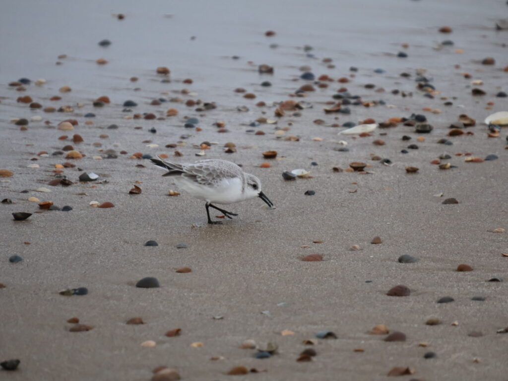 Het was heerlijk op het strand. De wind in de rug en bijna geen mensen. Opvallend was ook dat er bijna geen schepen voorbij voeren. In totaal hebben we in de verte vier schepen gezien. Een daarvan vaart naar Rusland. Wat zou het vervoeren?