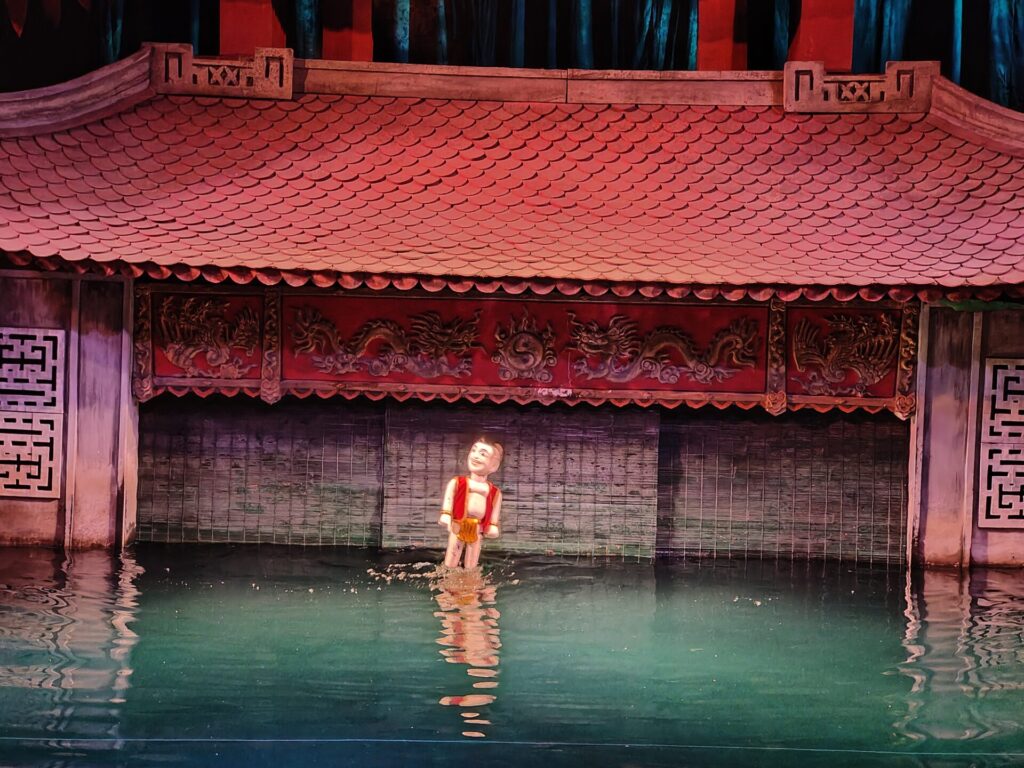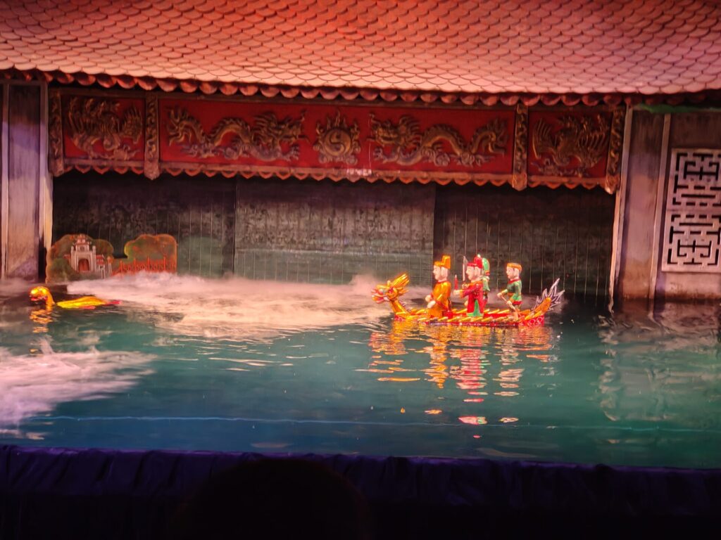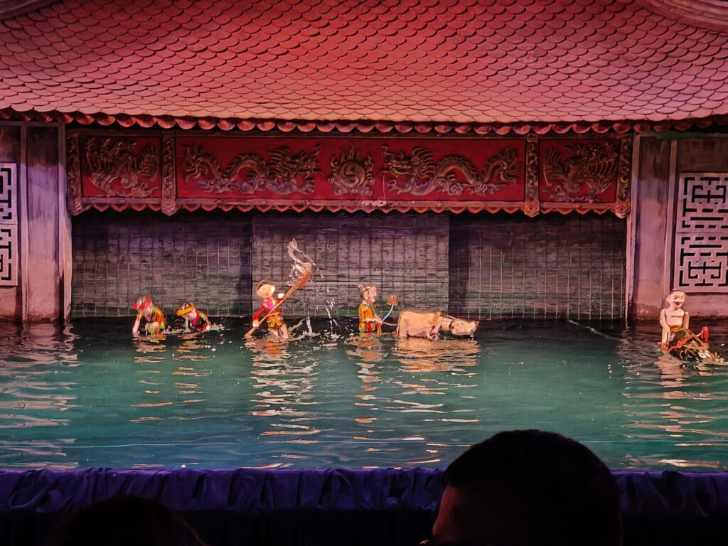 Abends haben wir das Thang Long Wasserpuppenspiel besucht. Das Stand immer noch auf der To Do Liste. Die Show war ganz witzig. Von Live Musik begleitet, wurden verschiedenen Szenen aus dem Alltag und der Vergangenheit gespielt.