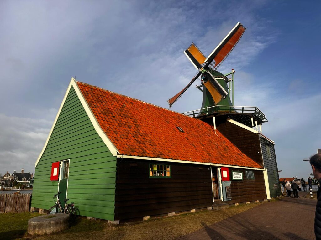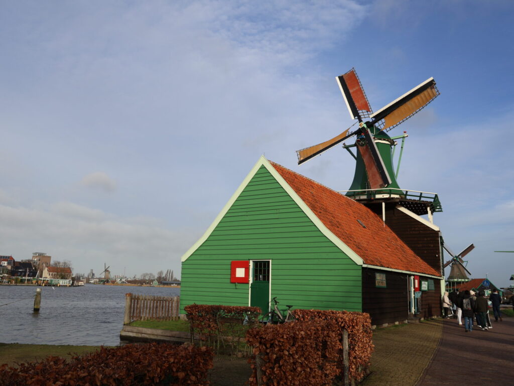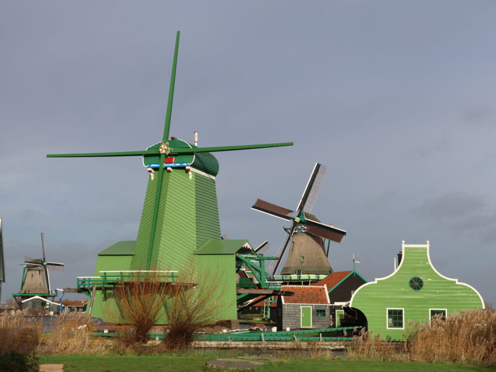 De Zaanse Schans zeigt verschiedene Mühlentypen auf engen Raum. Das ist ganz schön eindrücklich. Wir besuchen gemütlich die verschiedene Mühlen und die Häuser, welche dort ein Freilichtmuseum bilden.