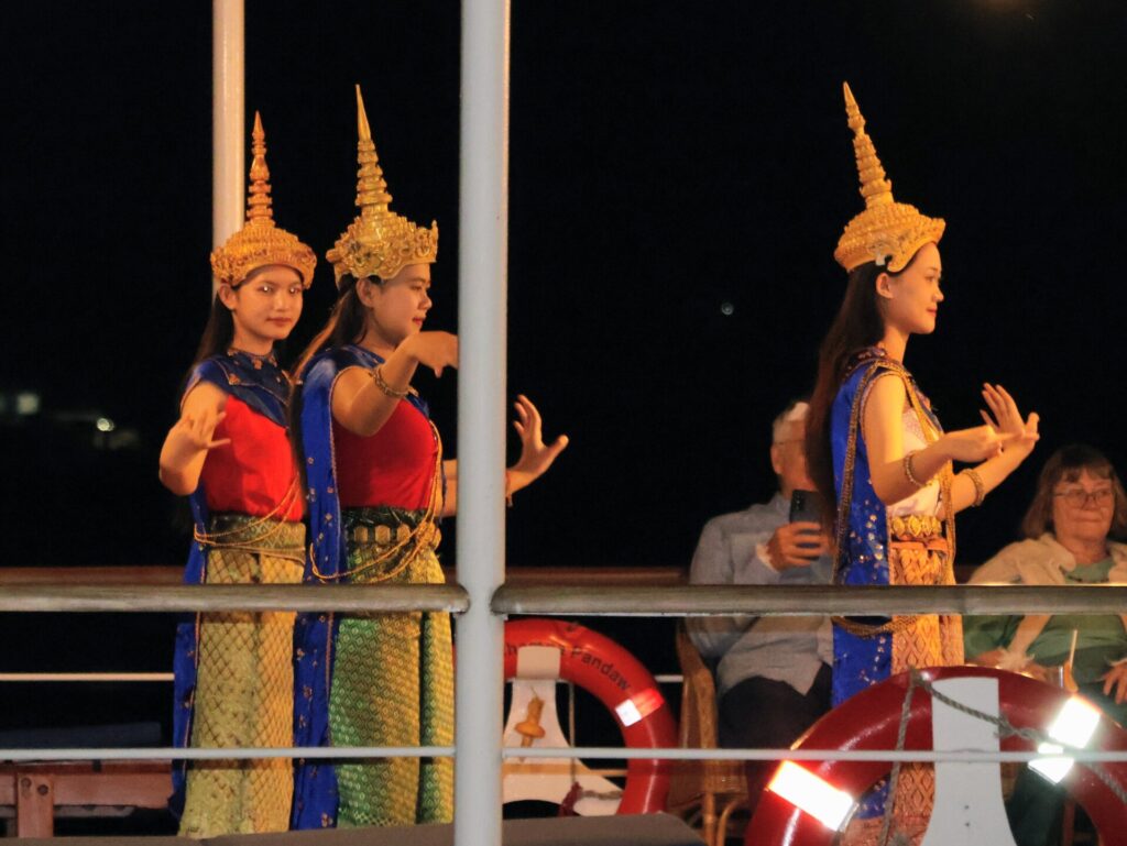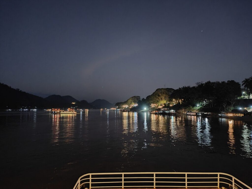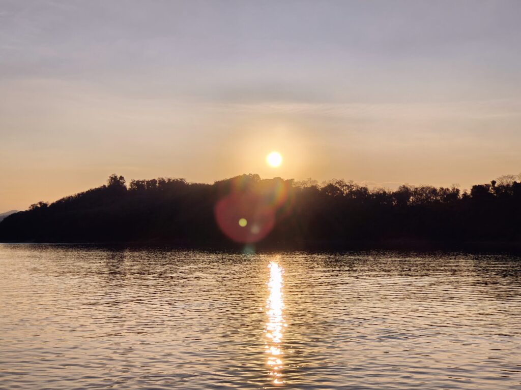 Wir beschliessen den Sonnenuntergang vom Wasser aus zu geniessen. Es gibt spezielle Sunset Fahrten. Um 16.45 Uhr geht es los. Das Schiff ist praktisch leer, wie viele anderen auf dem Mekong auch. Wir sitzen zu vorderst und geniessen die Fahrt und die Aussicht.