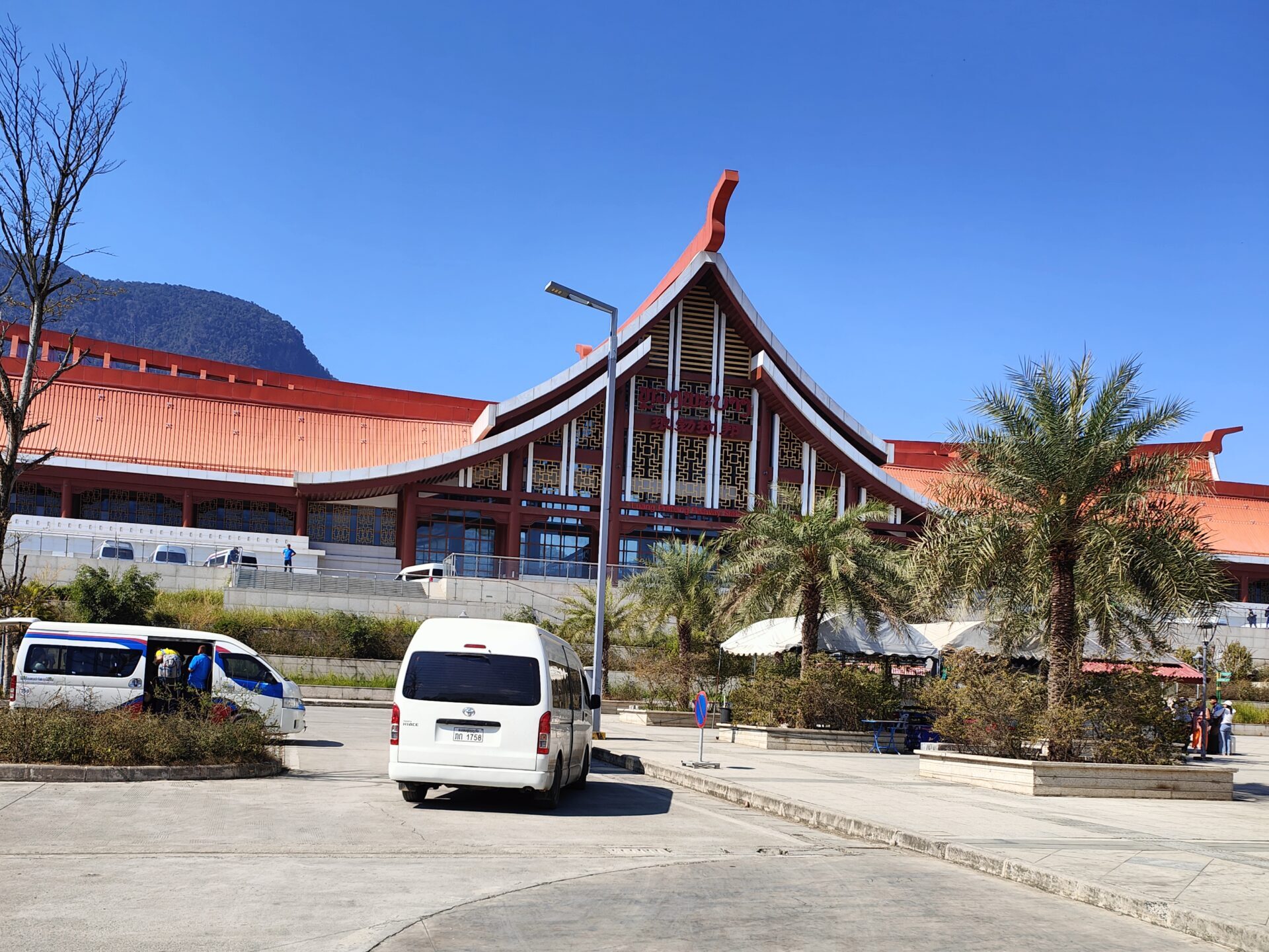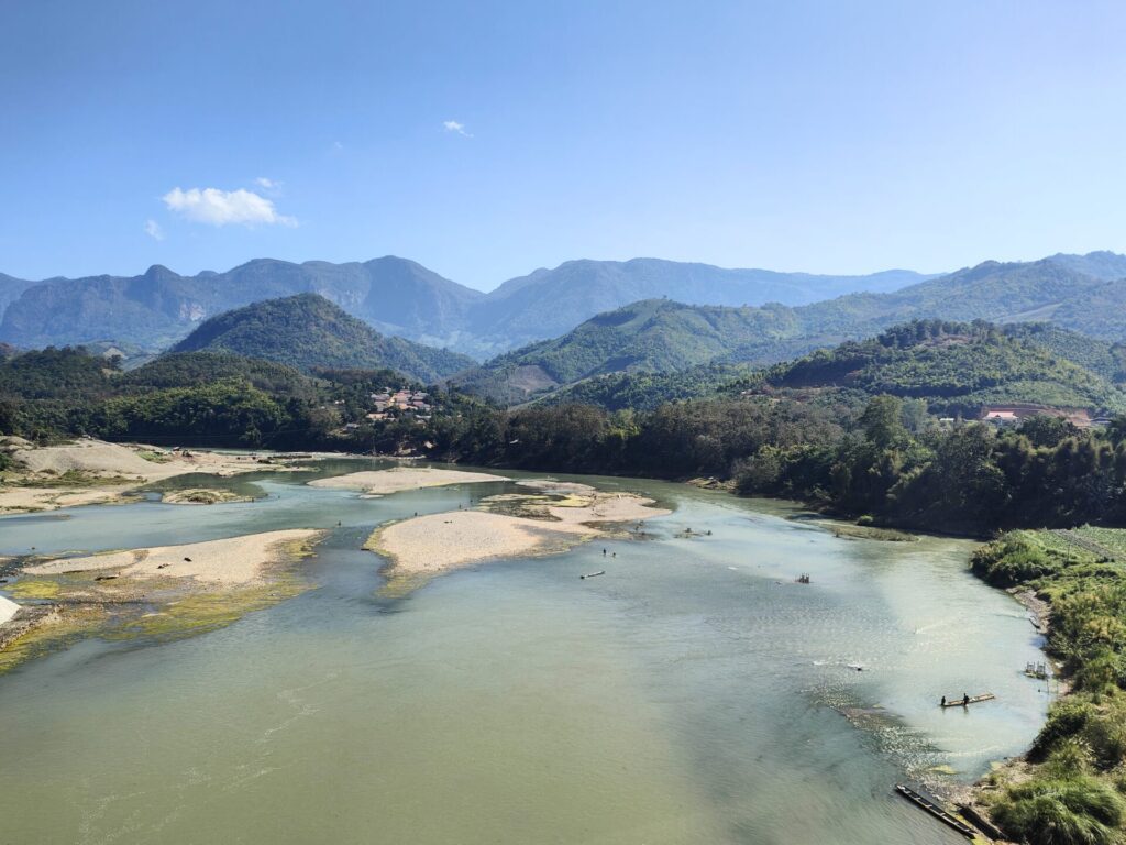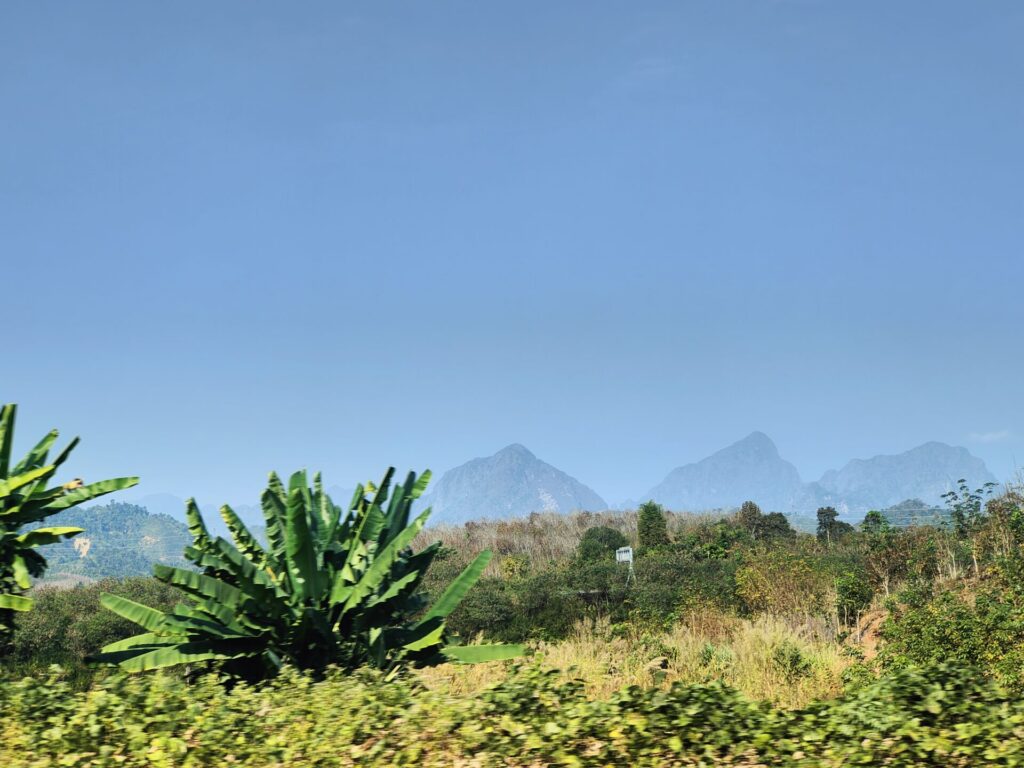 Die Landschaft ist schön abwechslungsreich. Mal Reisflächen, mal Bäumen oder Bergen. Wir machen einen Zwischenstopp in Vang Vieng. Es dauert noch ca. eine Stunde bis nach Luang Prabang. Viel sehen wir nicht mehr von der Landschaft. Wir fahren hauptsächlich durch Tunnels. Kurz vor 12.00 Uhr erreichen wir unser Ziel.