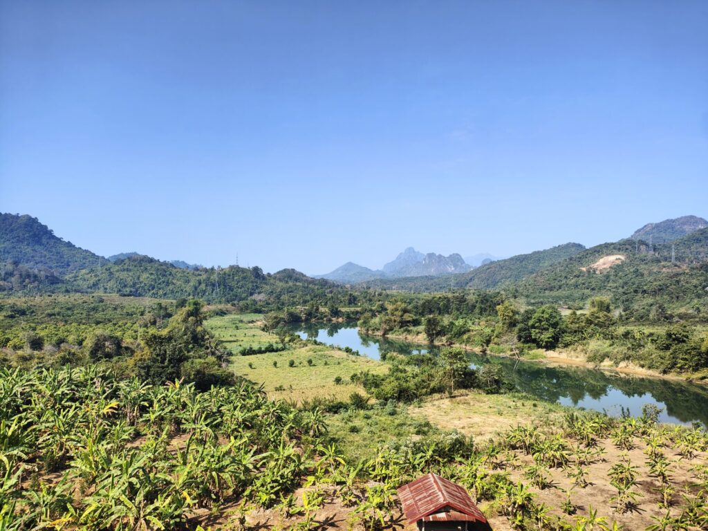Het landschap is mooi en afwisselend. Nu eens rijstvelden, dan weer bomen of bergen. We maken een tussenstop in Vang Vieng. Het duurt nog ongeveer een uur tot Luang Prabang. We zien niet veel meer van het landschap. We rijden voornamelijk door tunnels. Kort voor 12.00 uur bereiken we onze bestemming.