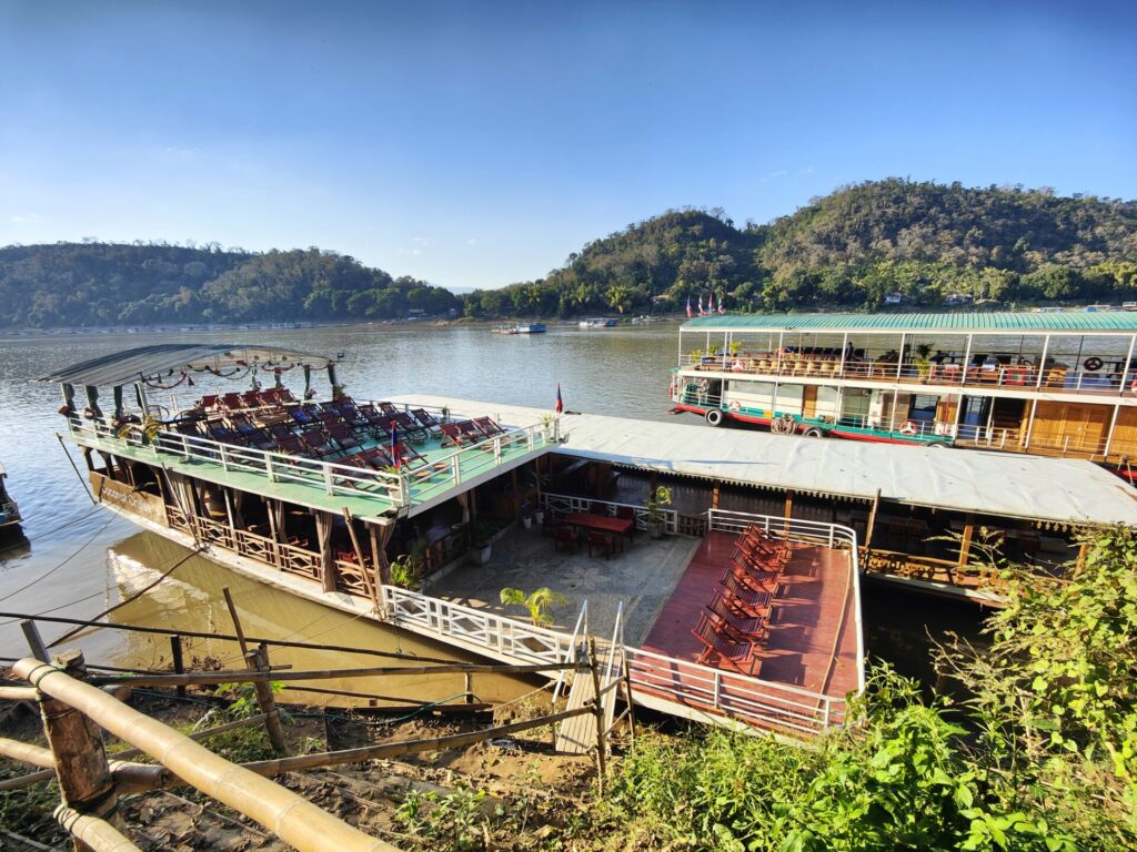 Later in de middag zijn we naar de Mekong-rivier gelopen. Die ligt vlak bij het hotel. In tegenstelling tot Vientiane is het hier op en aan het water erg druk. We genieten natuurlijk van de vele boten.