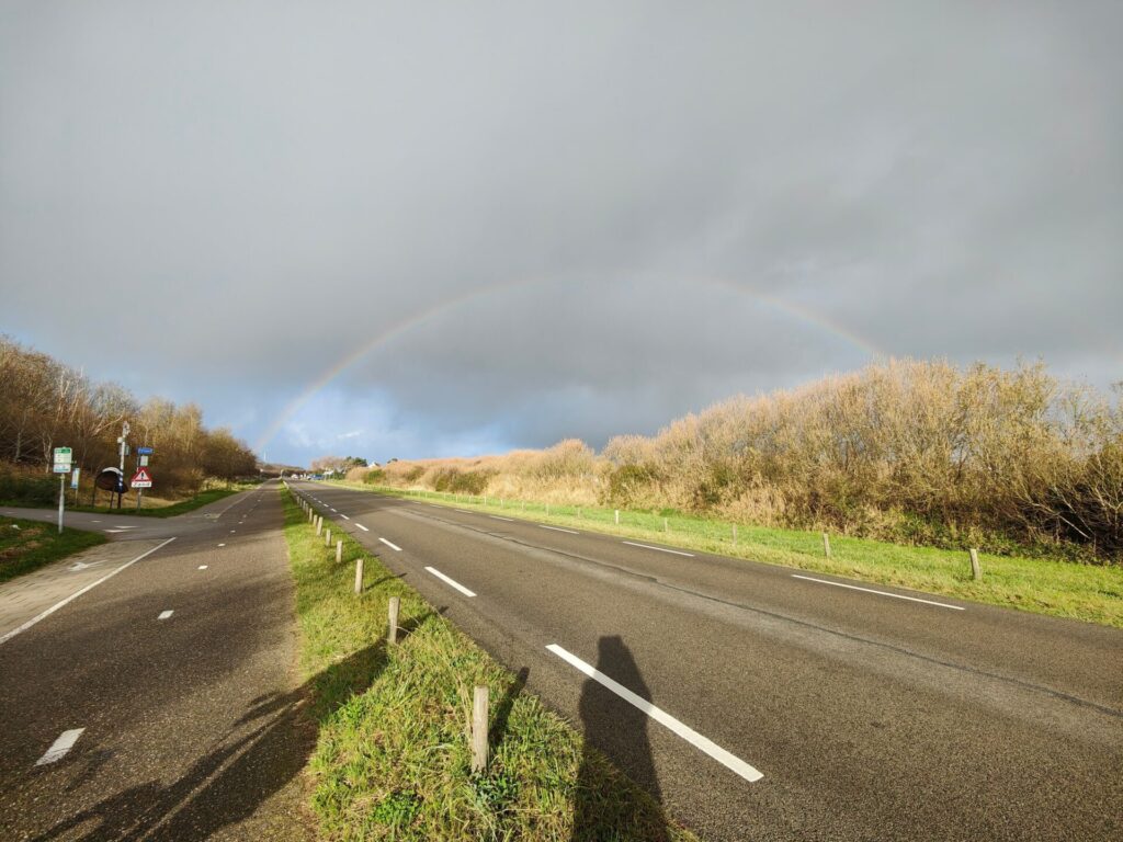 Het regende ook steeds weer en kort daarna scheen de zon weer. We hebben zeker tien regenbogen gezien.