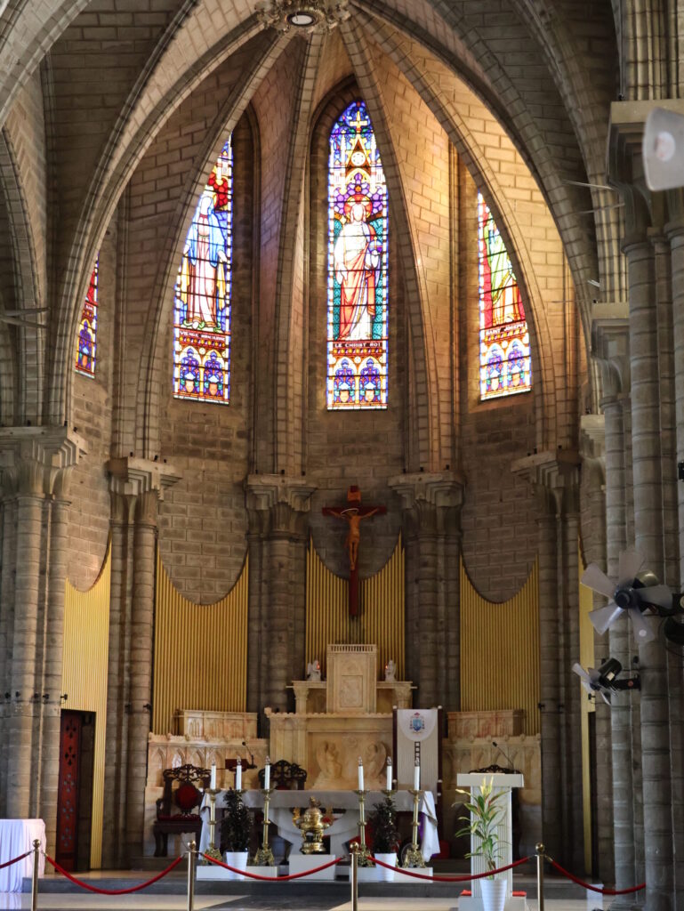 Unser letzter Station auf unsere Runde war die Bergkirche oder auch Kathedrale von Nha Trang genannt. Die Kirche steht auf einem Hügel. Obwohl es eine katholische Kirche ist, ist sie einfach eingerichtet. Ganz ungewöhnlich für uns.