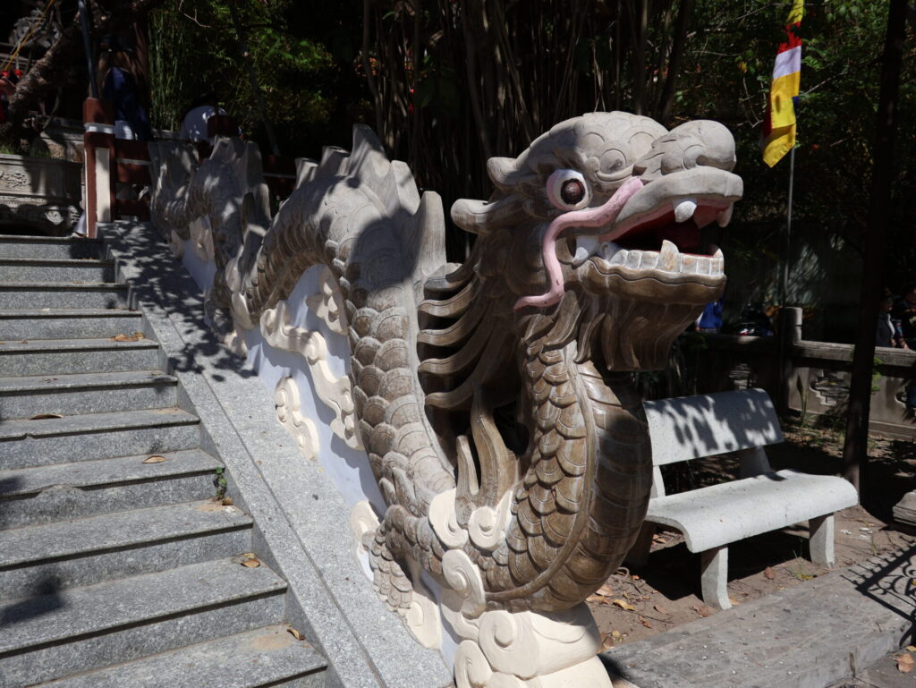 Frisch gestärkt besuchen wir die Pagode Long-Sơn. Die Pagode wurde 1889 auf dem Trai Thuy Hügel gegründet und hiess Dang Long Pagode. Nachdem die Pagode 1900 durch einen Sturm zerstört wurde, wurde sie an den südlichen Fuß des Hügels verlegt und in Long Son Pagode umbenannt. Das ist der Ort wo sie heute steht.