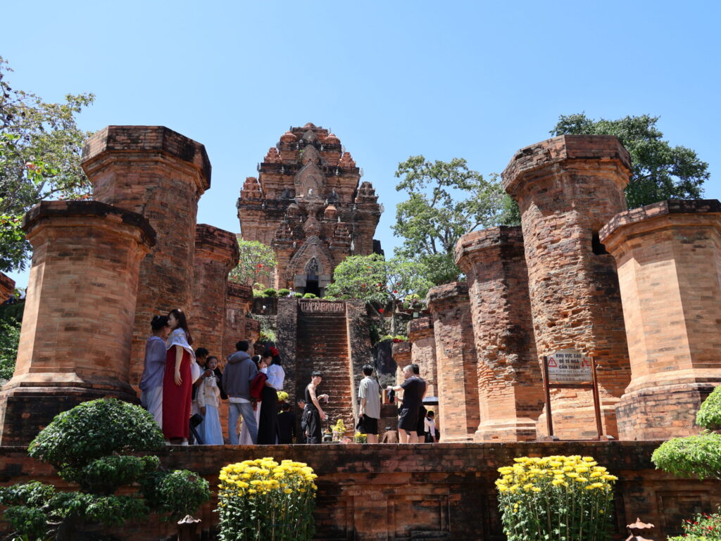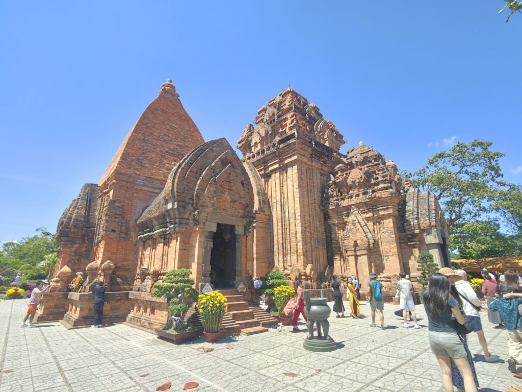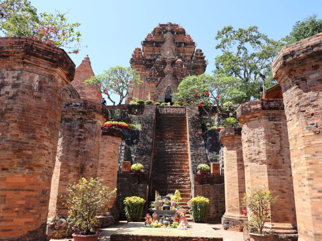 Daarna gingen we verder naar Po Nagar. Dit is een indrukwekkend tempelcomplex uit de Cham-cultuur. Het staat op de Cù-Lao-heuvel aan de rivier Cái. Het complex bestaat uit rode bakstenen torens die tussen de 8e en 13e eeuw zijn gebouwd. De grootste toren is ongeveer 23 meter hoog. Daarin staat een standbeeld van de godin, gemaakt van zwart graniet.