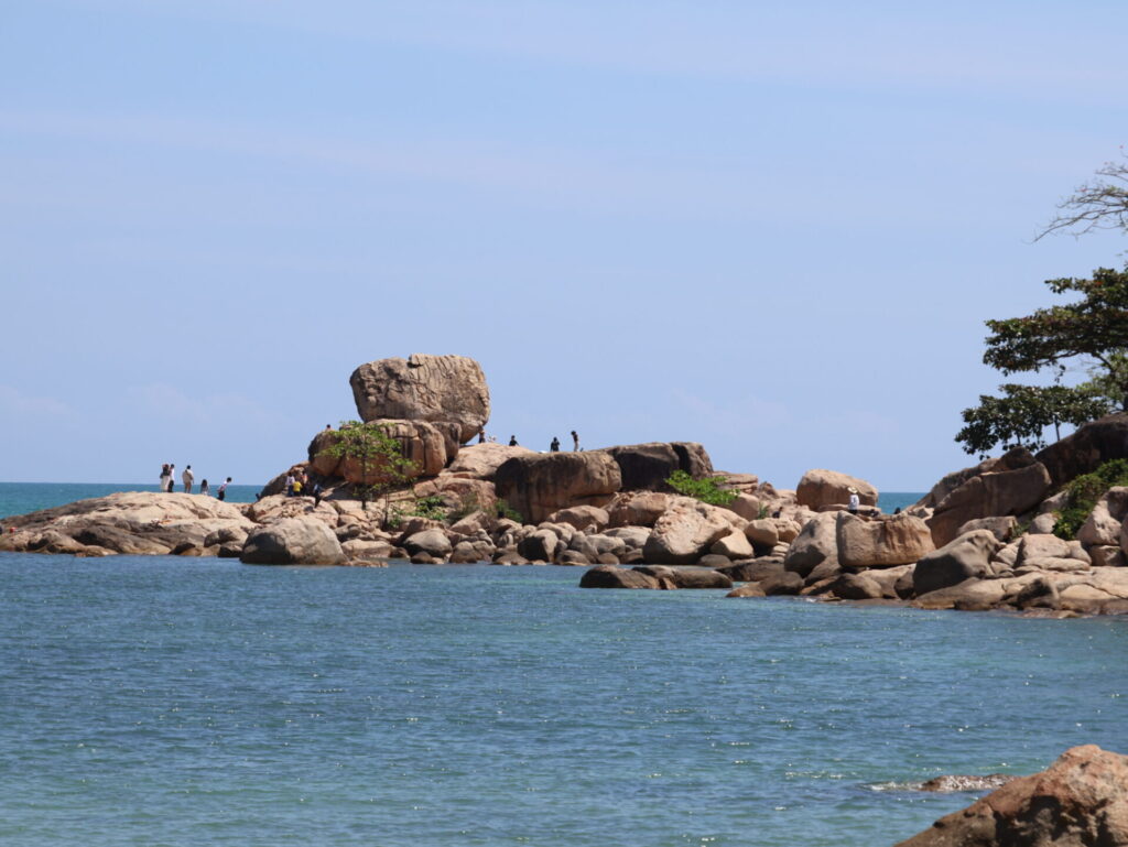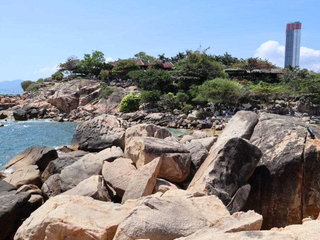 Der erste Stopp ist bei Hon Chong. Dies ist ein Naturschutzgebiet. Das Gebiet besteht aus einer natürlich entstandenen Felsformation. Dort befinden sich Hon Vo (Ehefrauenfelsen) und die Versammlungshalle in der Bucht von Nha Trang, ein traditionelles Haus im Hue-Stil, das auf dem Felsen erbaut wurde.