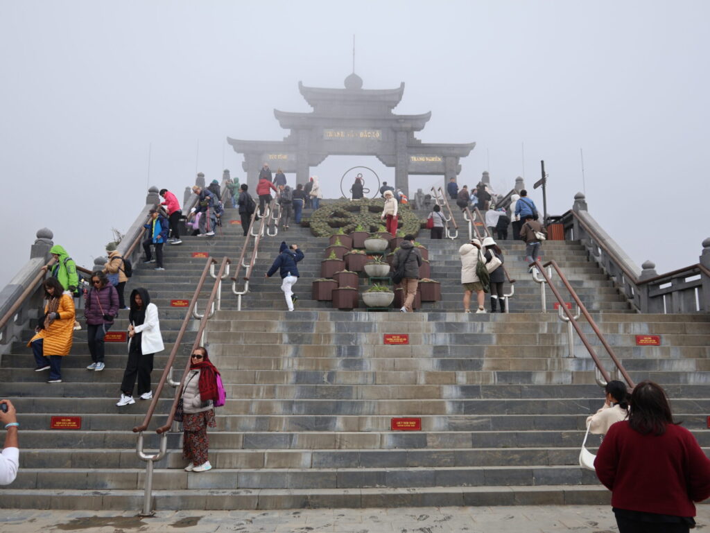 Sungroup hat die Infrastruktur geschaffen um den Berggipfel zu erreichen. Sie haben in weniger als 800 Tagen diverse Tempelanlagen, Buddhas, ein Funicular, Restaurants und vieles mehr. Sungroup haben wir das letzte Mal in Cat Ba gesehen.