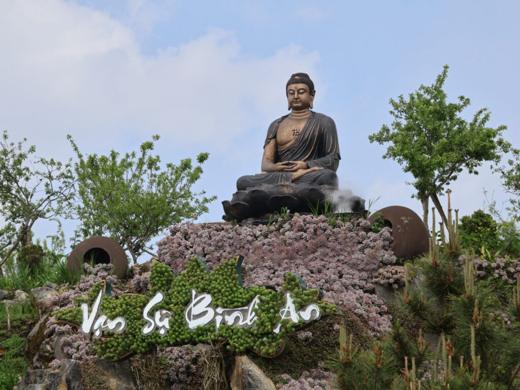 Sungroup heeft de infrastructuur aangelegd om de bergtop te bereiken. In minder dan 800 dagen hebben ze diverse tempelcomplexen, boeddhabeelden, een kabelbaan, restaurants en nog veel meer gerealiseerd. We hebben Sungroup voor het laatst in Cat Ba gezien.