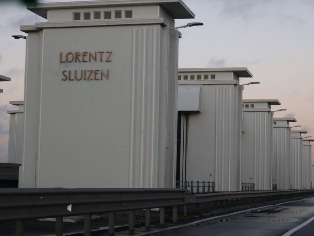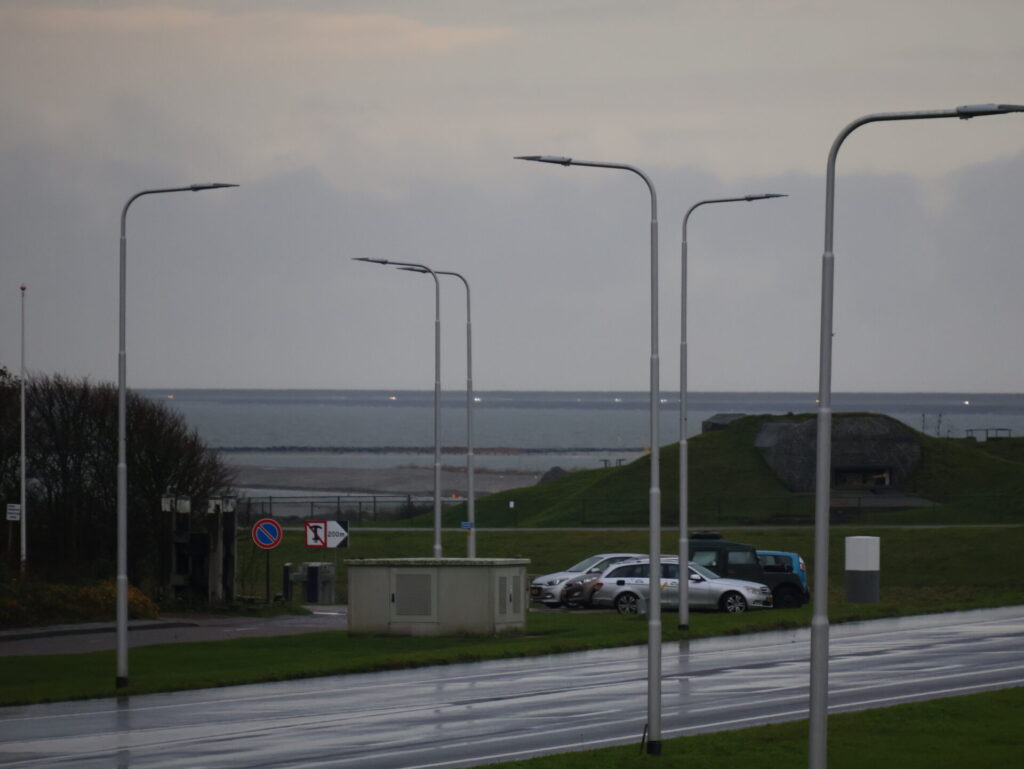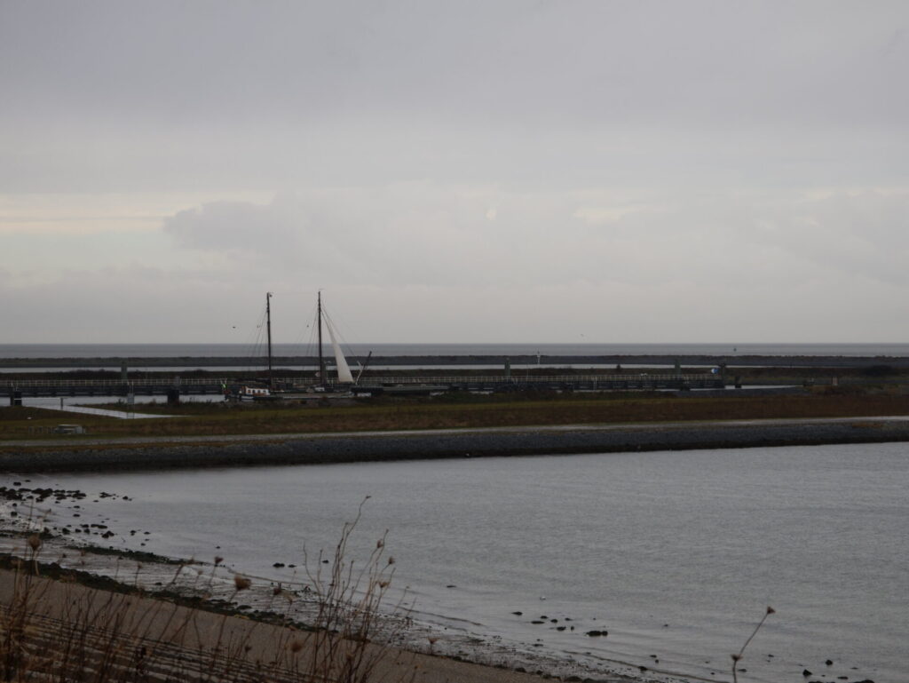 Es windet und regnet, die Aussicht ist slecht. Zeit für ein wenig Hintergrund Information. Der Afsluitdijk ist das erste realisierte Projekt zur Hochwasserschutz aus dem Zuiderzee-Gesetz. In 1927 wurde mit dem Bau angefangen. In 1932 wurde der Deich geschlossen. Somit wurde Das Ijsselmeer vom Wattenmeer abgetrennt und verbindet die Provinzen Noord-Holland mit Friesland. Der gesamte Deich ist 32,5 km lang, der wasserhaltende Teil 30 km. Nahe Nordholland liegen die Stevin-Schleusen. Bei Kornwerderzand, etwas mehr als 4 km vom friesischen Festland entfernt, befinden sich die Lorentz-Schleusen . Bei schönem Wetter sind die Westfriesische Inseln zu sehen. Heute leider nur ein Schimmer.