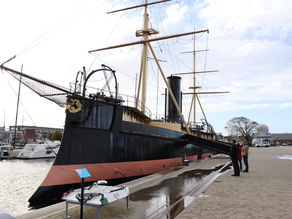 Auf der Noord-Holländische Seite haben wir unsere Fahrt nach Den Helder fortgesetzt. Den Helder ist bekannt für die Fähre nach Texel, eines der Westfriesischen Watteninseln, und die Marine. In der Zwischenzeit war die Wolkendecke aufgebrochen, die Sonne schien und es war trocken. Zeit für ein Spaziergang. Bei dem Marine-Museum haben wir das Auto parkiert und sind zum Wattenmeer gelaufen. Von dort aus konnten wir die Fähre und verschiedene Kriegsschiffe der Niederländischen Marine sehen.