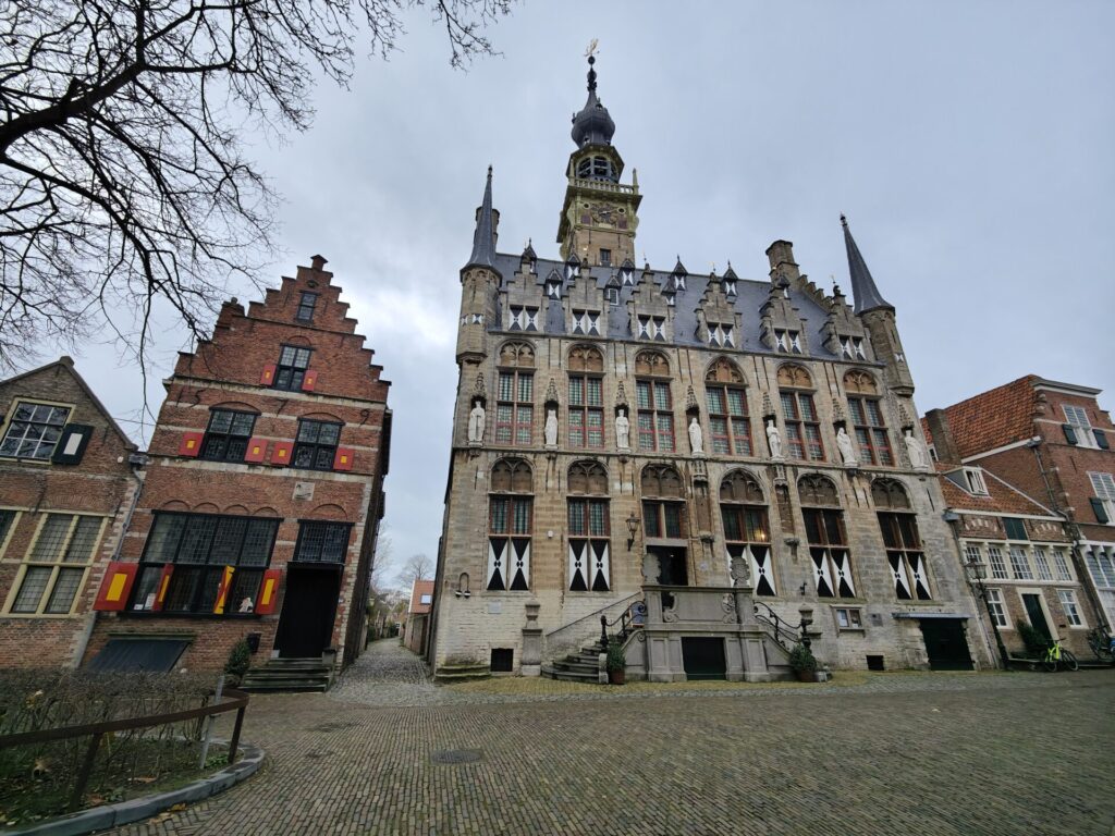 Danach ging es weiter nach Veere. Zuerst haben wir die Schleusen im Kanal von Walcheren angeschaut. Heute war dort nichts lis. An der grosse Kirche vorbei ging es zum Stadtzentrum. Von dort am schönen gotischen Rathaus entlang zum Hafen. Von haben wir die Festung «Stenen Beer » und die Mühle «de Koe» besucht. Zur Mühle ging es mit der Zugfähre übers Wasser. Das war ganz lustig und anstrengend. Zum Schluss ging es am Hafen entlang zur Campveersche Pforte und zum Parkplatz.