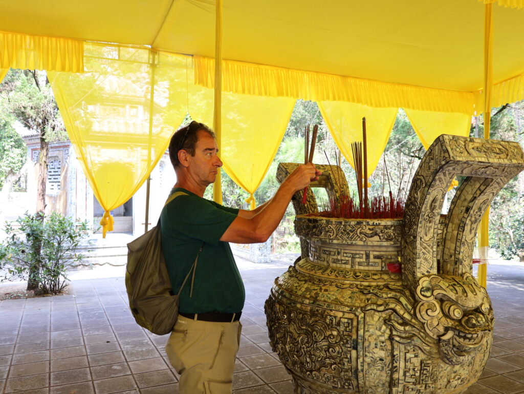 Früher veranstalteten die Nguyến-Könige auf diesem Platz jeden Frühling eine Zeremonie, bei der sie „Himmel und Erde“ Opfergaben überreichten. Der Teil den wir besucht haben, befinden sich drei Terrassen, die zur Esplanade gehören und die drei Elemente Himmel, Erde und Mensch symbolisieren.