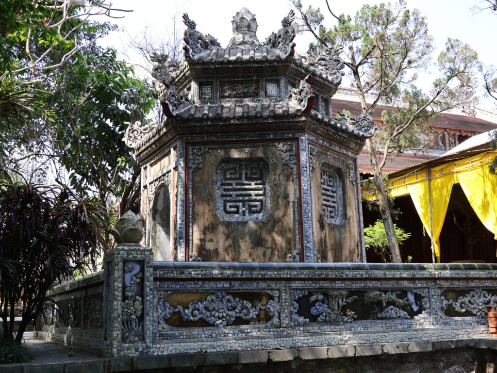 Heute war Tag zwei unserer Hop On Hop off Tour. Zuerst haben wir die Pagode Từ Hiếu besucht. Zuerst sind wir für uns auf dem acht Hektaren grosses Gelände herum gelaufen, bis wir von einer jungen Frau angesprochen wurden. Sie hat uns erklärt, dass es gestern und heute ein spezieller Tag ist in der Pagode.