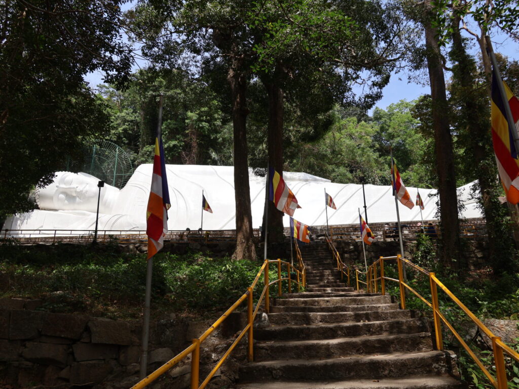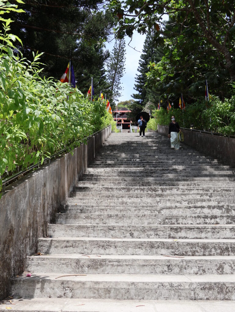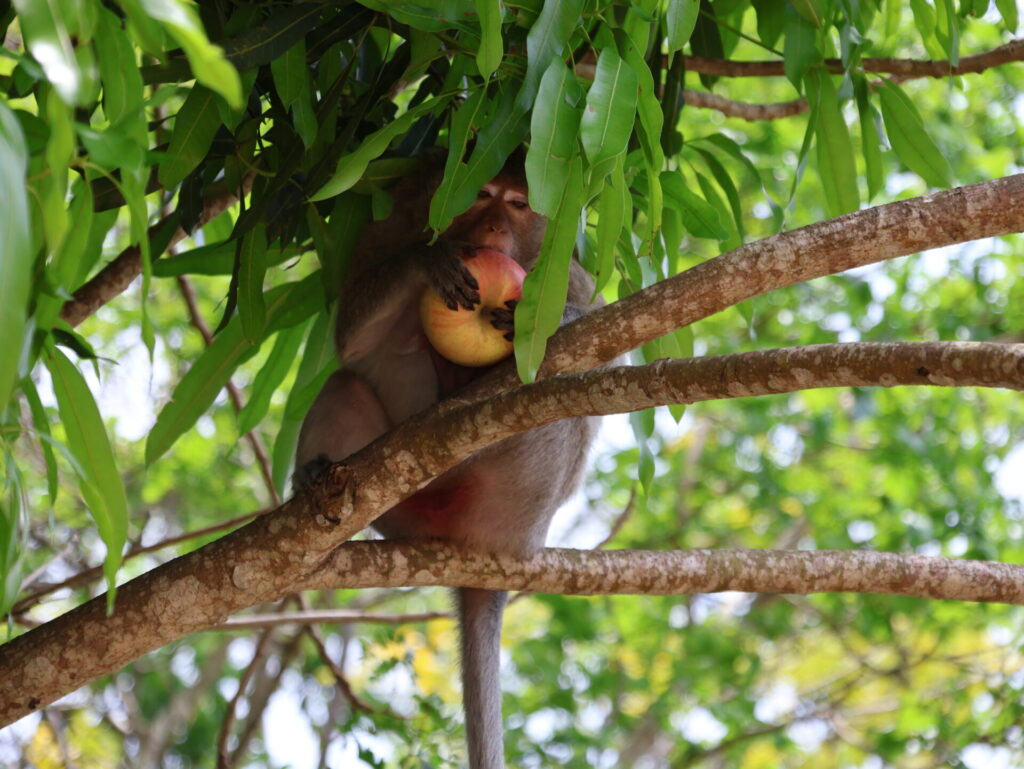 Unterwegs dorthin, wir müssen doch etwas laufen 🤪, begegnen wir eine Gruppe Affen. Es gibt ein spezieller Tisch für Bananen und jedes Mal wenn jemand Früchte opfert, werden diese durch die Affen geklaut. Ist lustig zuzuschauen.