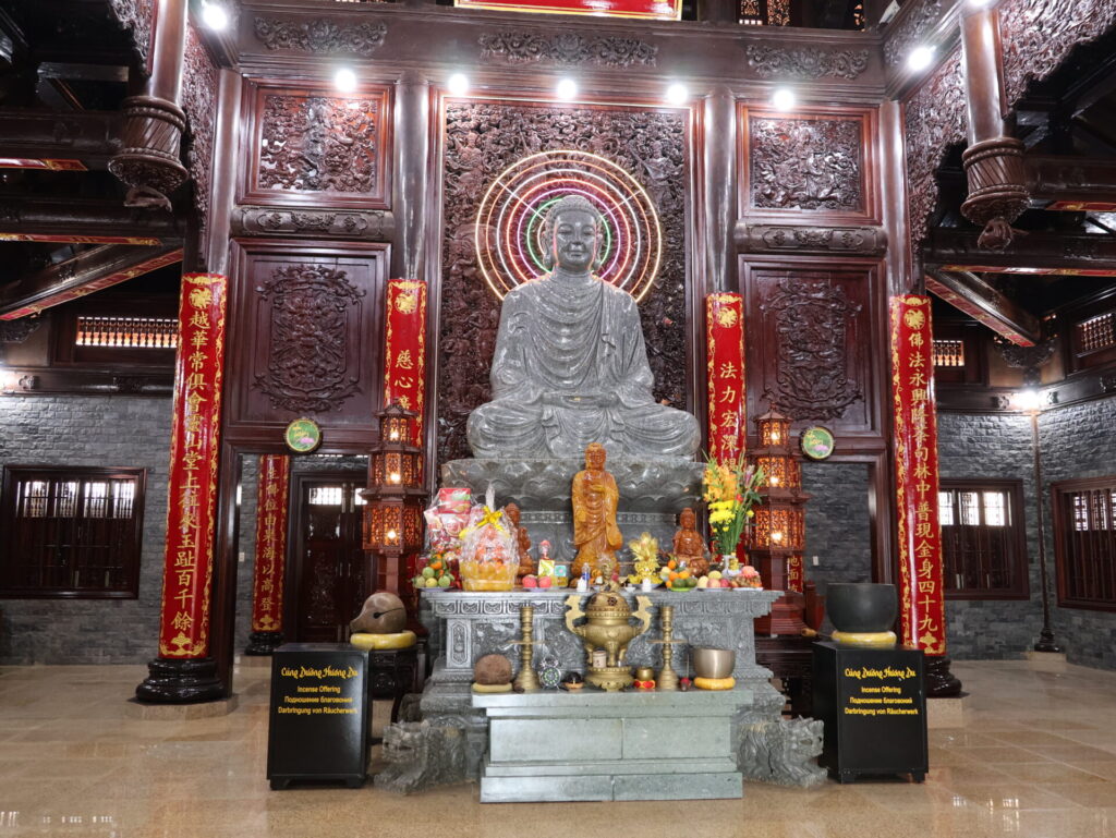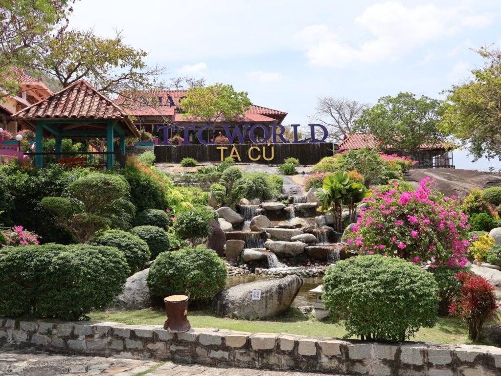 Als wir ankommen, brauchen wir erstmal was zu Trinken um uns ein wenig von der Fahrt zu Erholen. Danach geht es mit der Kabelbahn hoch in die Bergen. Na ja, Bergen …. ganze 695 Meter. Dort oben ist die buddhistische Pagode Tà Cú steht und eine schlafende Buddha von 49 Meter lang und 11 Meter hoch.