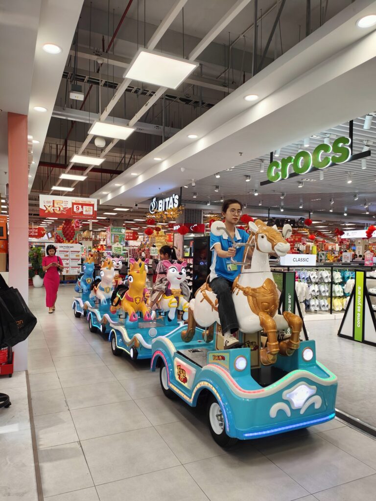 Danach hat der Taxifahrer uns gratis in die Stadt gefahren. Zum Einkaufszentrum Lotte. Das kennen wir schon aus Hanoi. Die Leuten haben Freude an uns. Vinh ist nicht touristisch und wir sind die Exoten. Wir werden dann auch permanent angelächelt und angesprochen. Sie finden uns «cute» also herzig. Nun wissen wie sich Tiere im Zoo fühlen 😉. Der einziger Satz den allen hier kennen ist: Where are you from? Fast keine hat eine Ahnung wo oder was die Schweiz ist. Aber weiter diskutieren hat auch keinen Sinn, weil mehr Englisch können die Wenigsten.