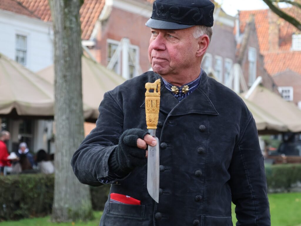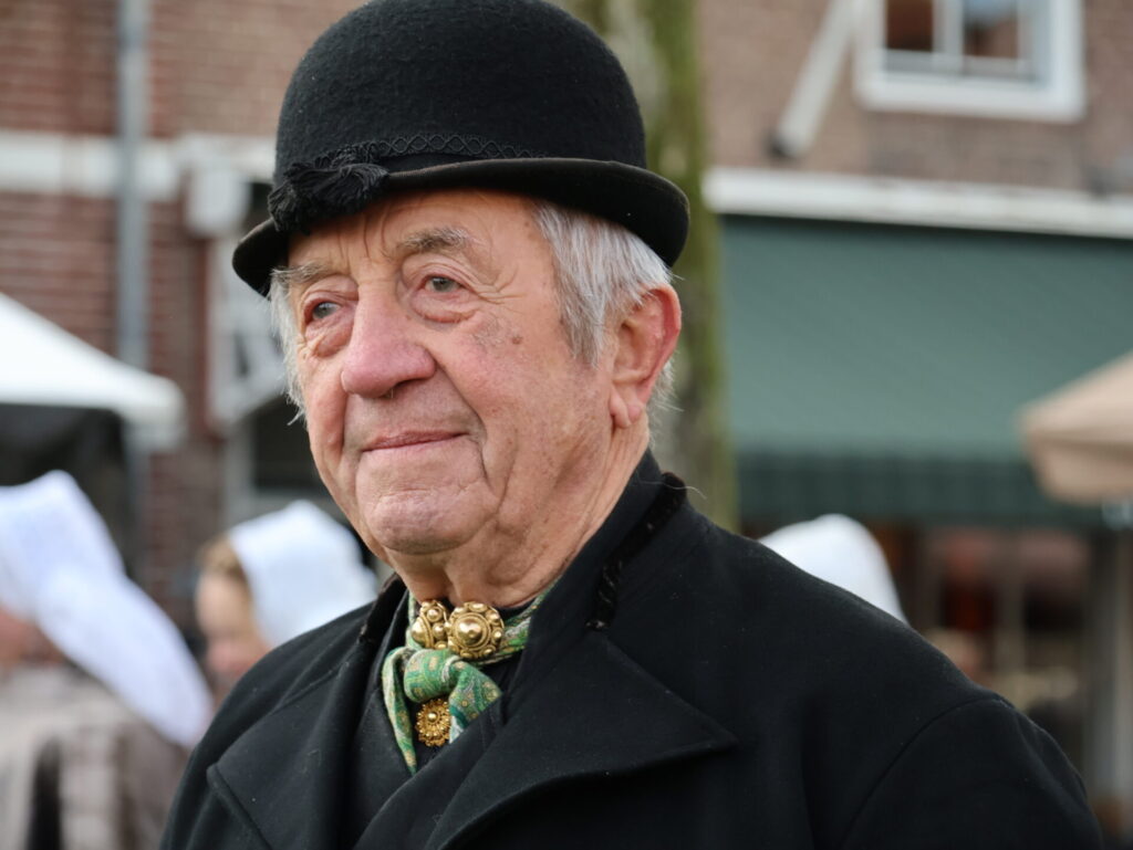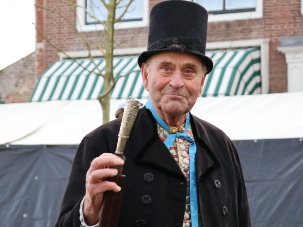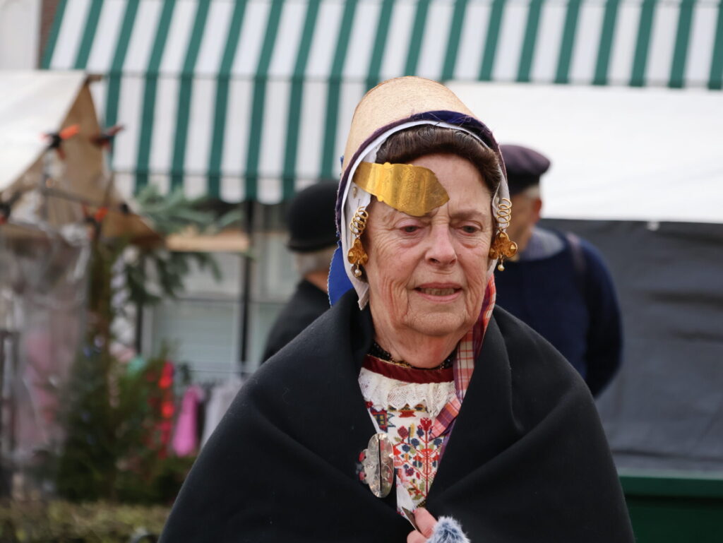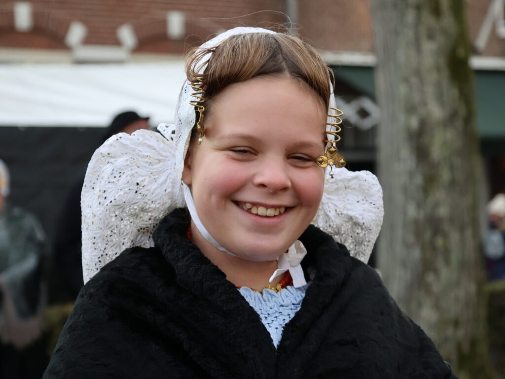 De klederdrachtvereniging toont de verschillende klederdrachten uit 1850 en nu. Dat is heel interessant. De mensen in de klederdrachten hebben het koud en wij met hen.