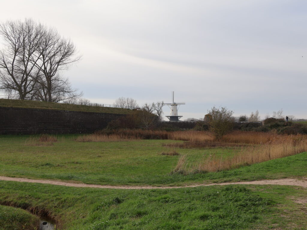 Daarna gaan we terug via het bolwerk naar het stadje. Omdat de zon steeds meer achter de wolken verdwijnt, wordt het steeds kouder.