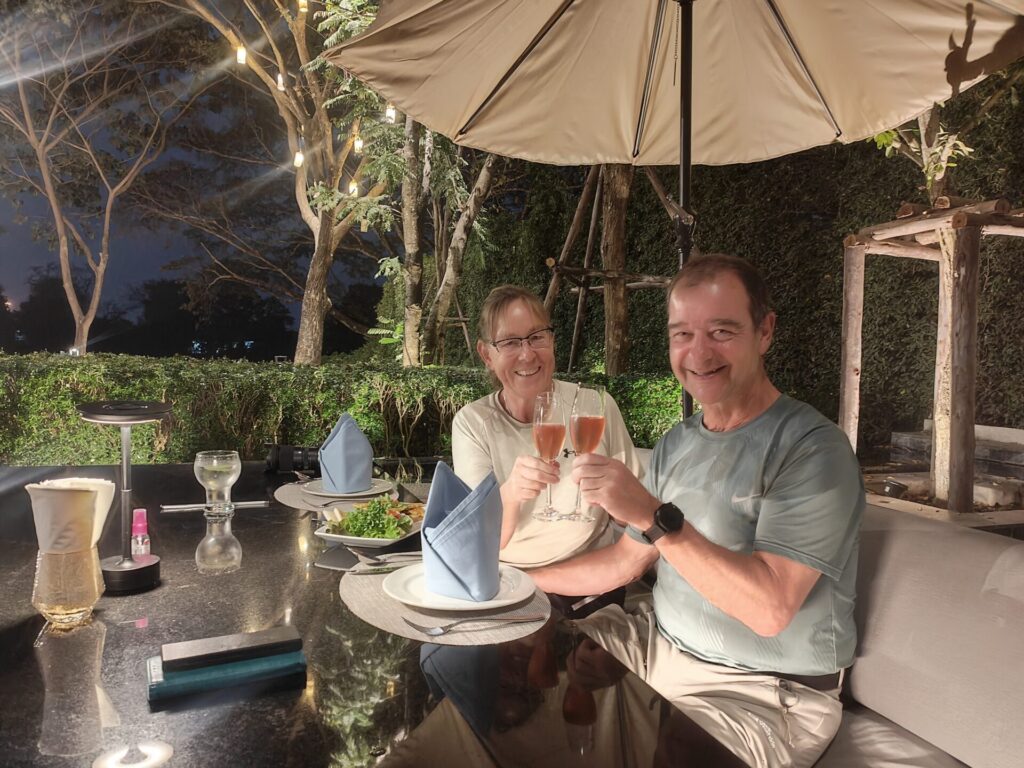 Daarna hebben we rustig door de stad geslenterd en hebben we onszelf getrakteerd op een massage. Dat deed goed. Onze laatste avond hebben we gezellig afgesloten in een restaurant aan de rivier Mae Nam Kok met een glas prosecco (onze eerste in Azië).