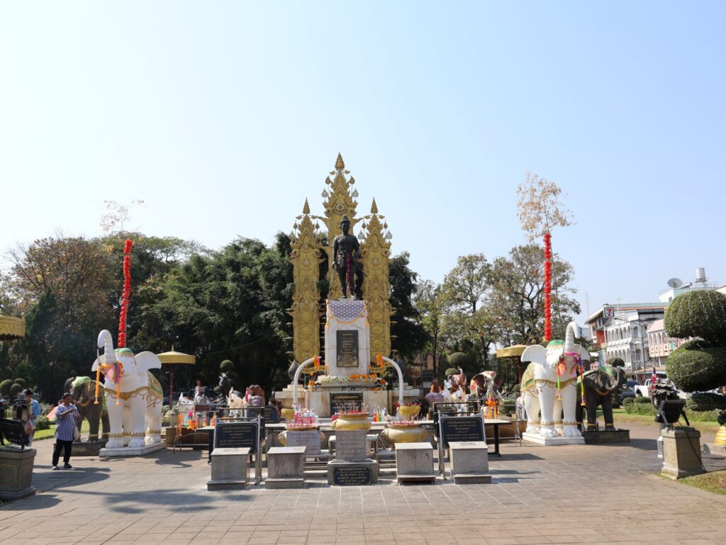 Na het park, dat vrij ver buiten Chiang Rai ligt, zijn we terug naar de stad gegaan naar het King Mangrai Monument. Hij stichtte Chiang Rai in 1262 als eerste hoofdstad. In 1296 stichtte hij Chiang Mai.