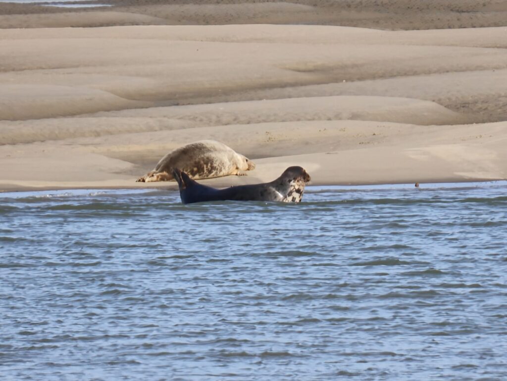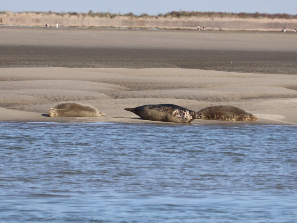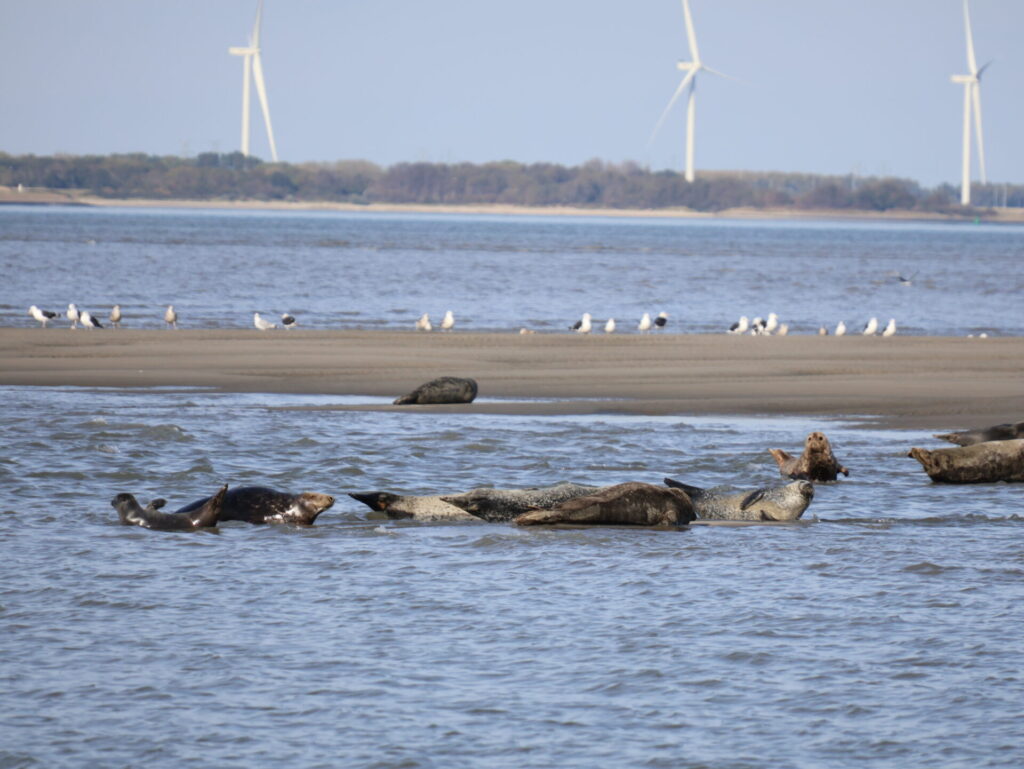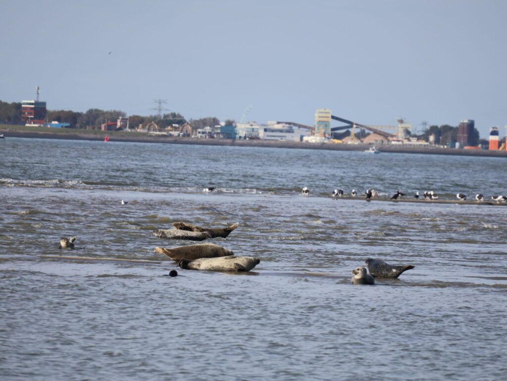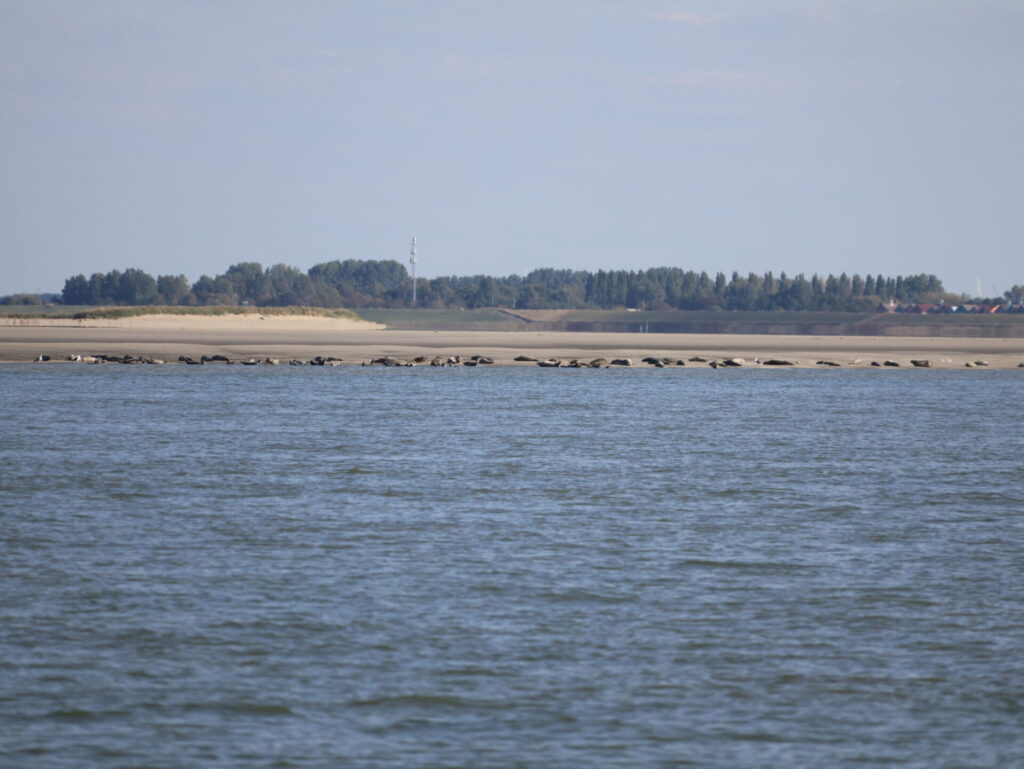 We vertrokken vanuit de haven helemaal over de Westerschelde naar de zandbanken. Omdat het ’s middags eb was, lagen deze nog droog en lagen er veel zeehonden te rusten. Ze genieten ook van de zon.